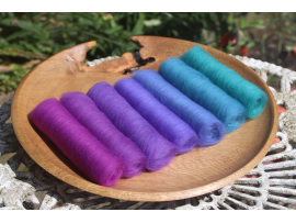 This soft, gentle colouway was designed for the Halloween Poisonous Plant Box. It is a blend of 2/3 merino and 1/3 Royal Baby Alpaca. Royal Baby Alpaca is now one of my favourite fibres, it has a long staple length, which has a slight shine….but is sooo amazingly soft! The long staple length of the Royal Baby Alpaca will make the blend easier to spin than merino alone, and will add extra warmth and drape to the finished yarn.