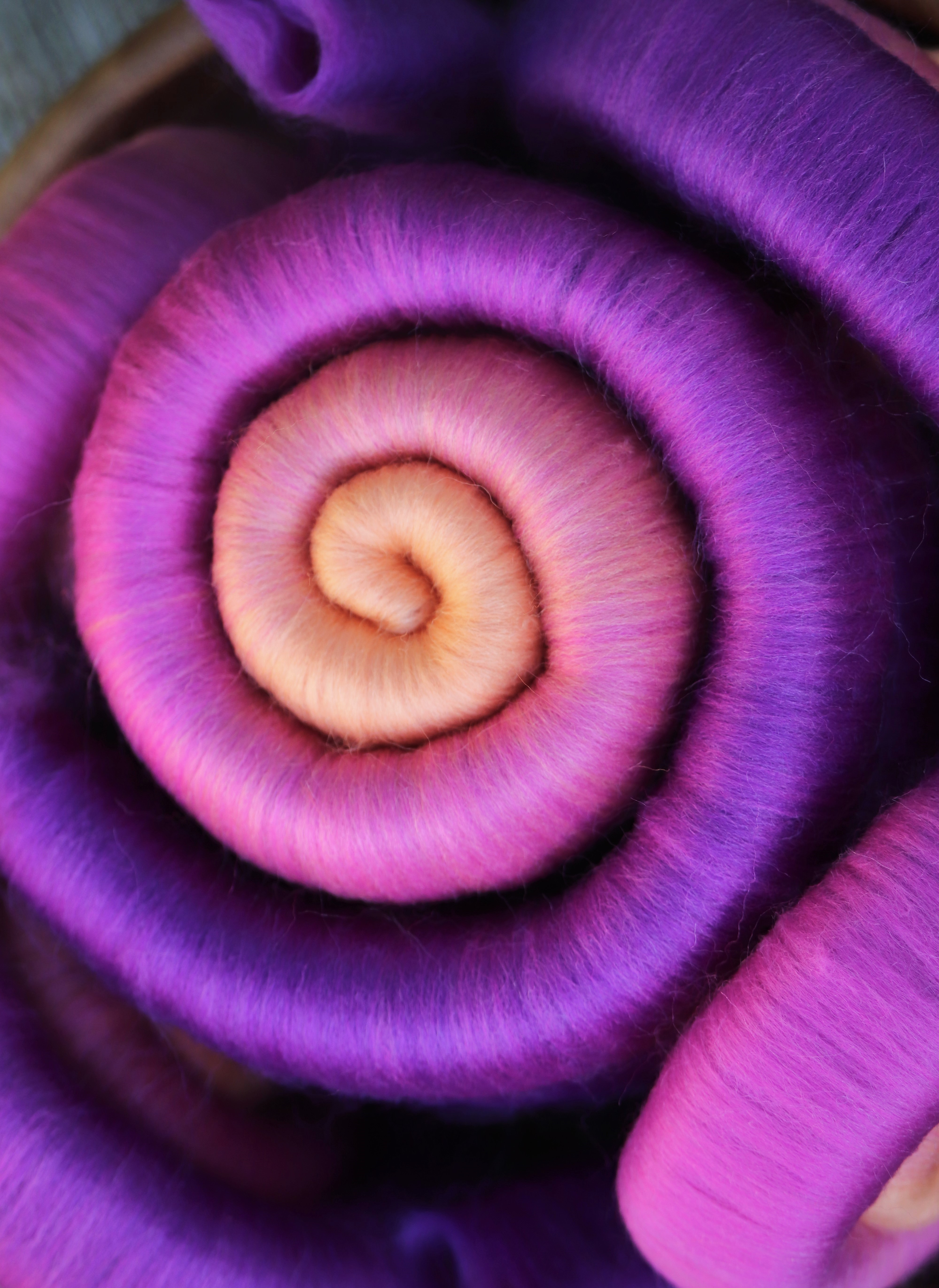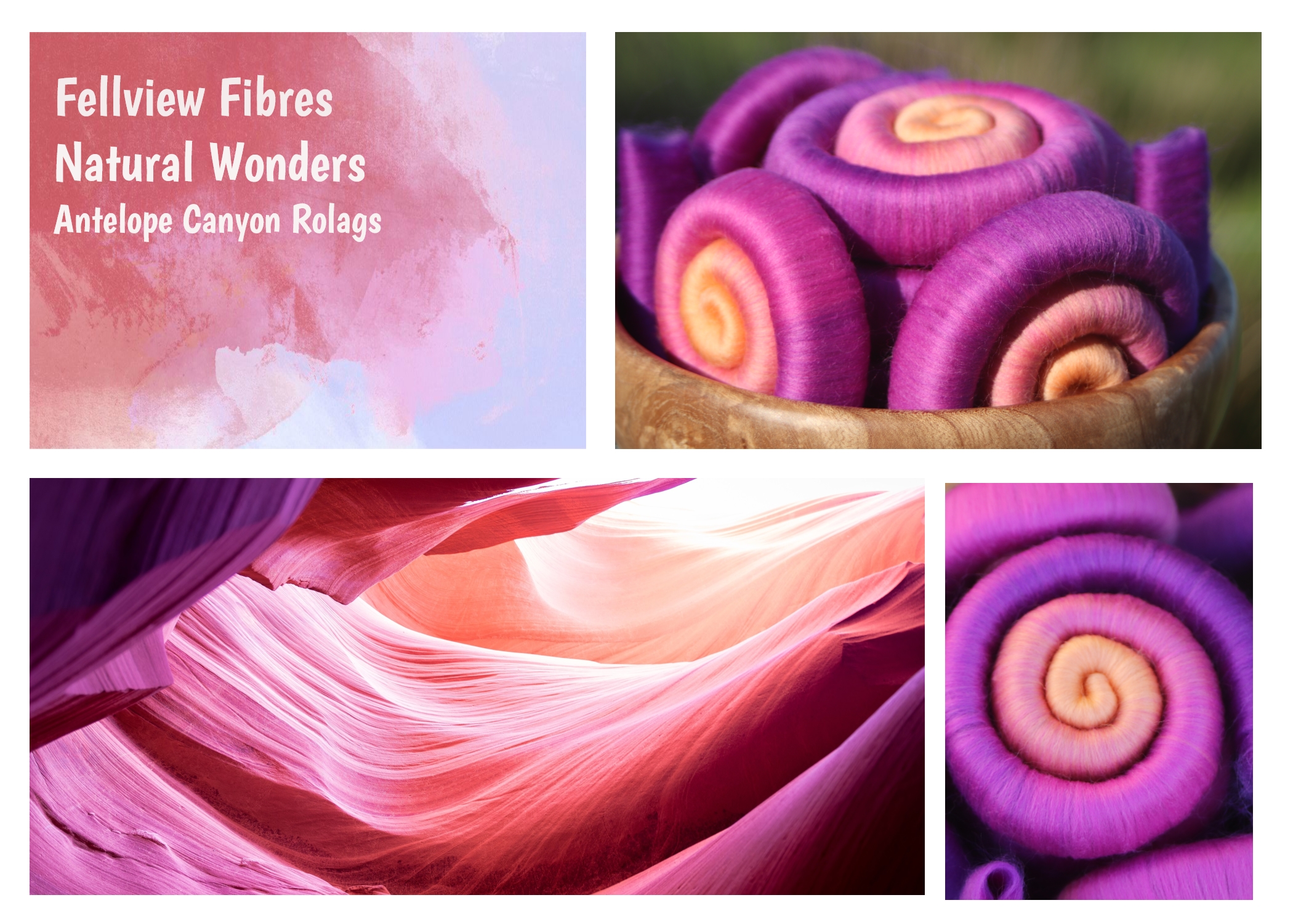 These rolags were designed for the Rolags Club. The inspiration was 'Nature's Wonders' -and the photograph used was one of Antelope Canyon in Arizona during the sunset. During this time of the day, the sandstone turns the most amazing shades.