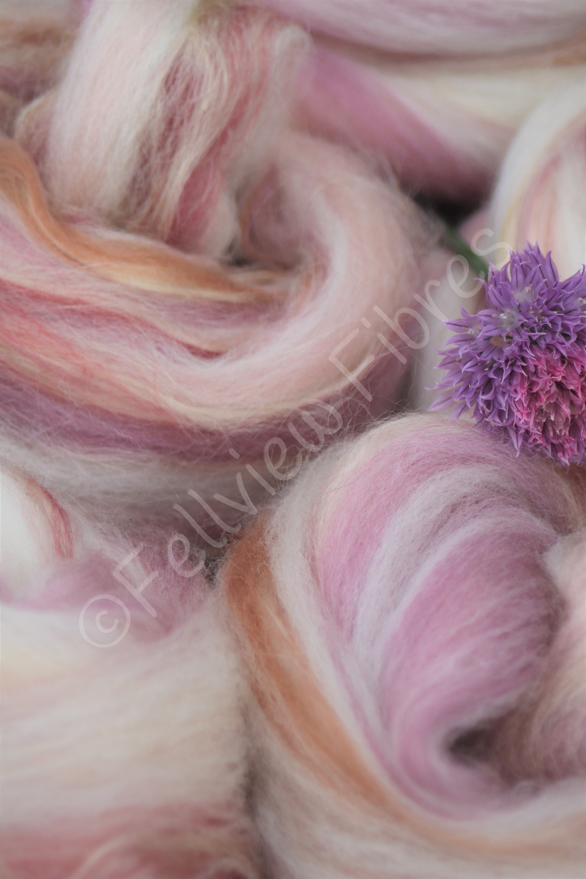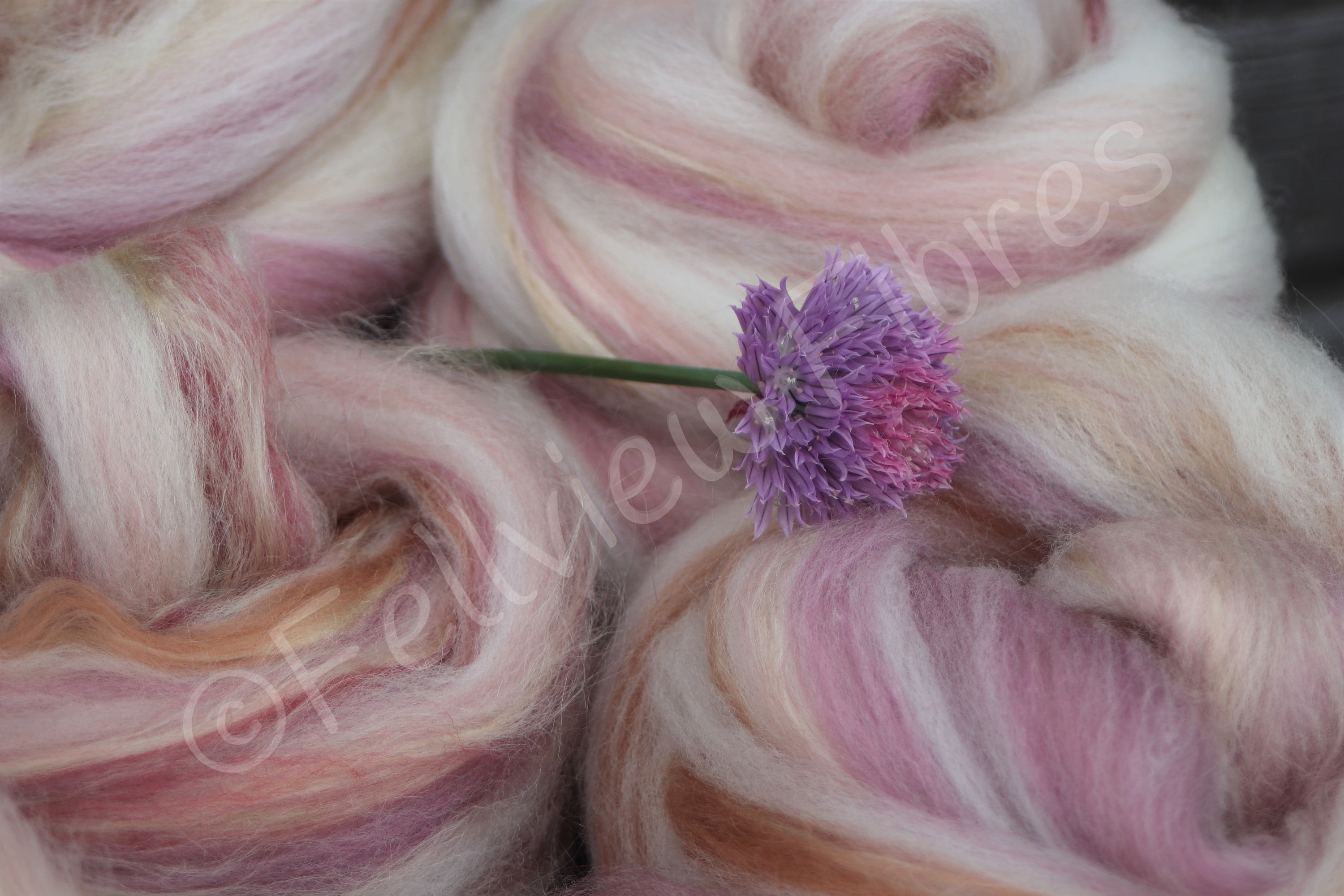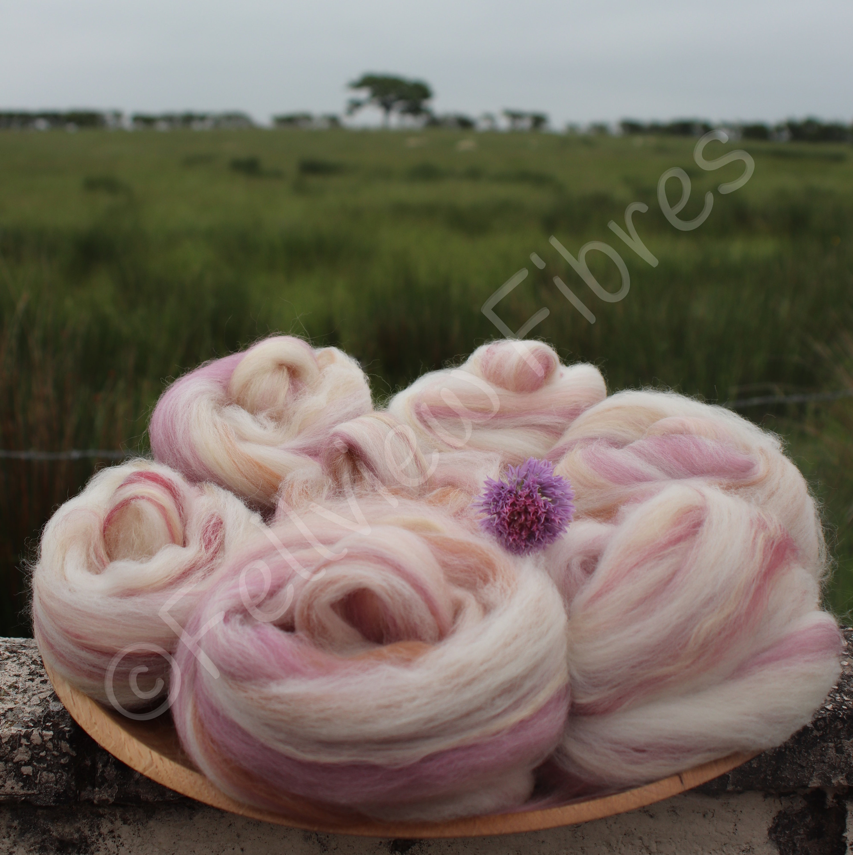 You will recieve just over 100g of hand pulled roving nests in the Avec colourway. The Rambouillet fibres and merino fibres will felt. If you do not wish them to, hand wash in cool water.