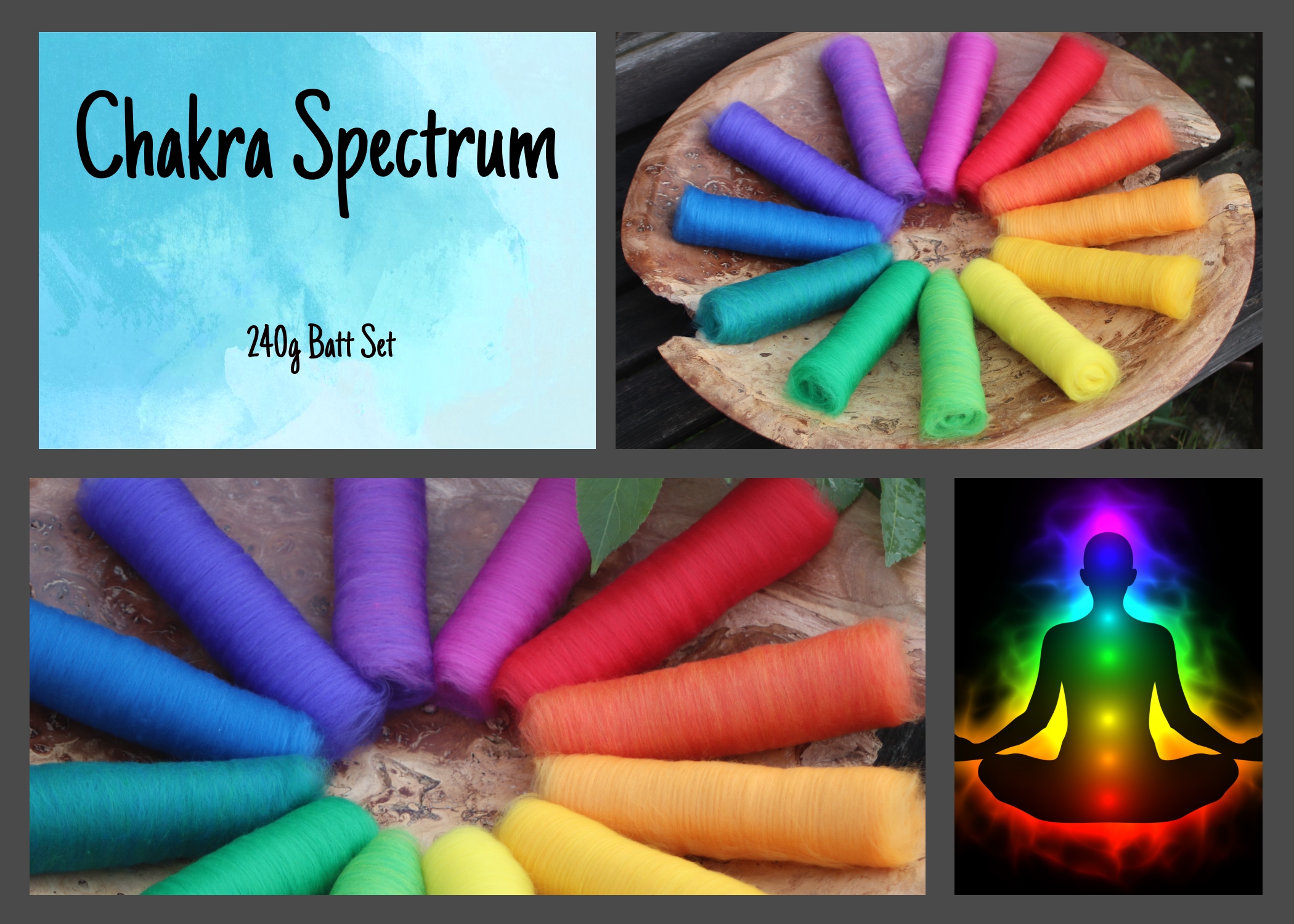 I was asked to make a 12 batt set based on the Chakra colours. This is the set that I came up with. The colours start with violet blue moving through bright pinks, red, orange, yellow, green and finalyy back to blue again.