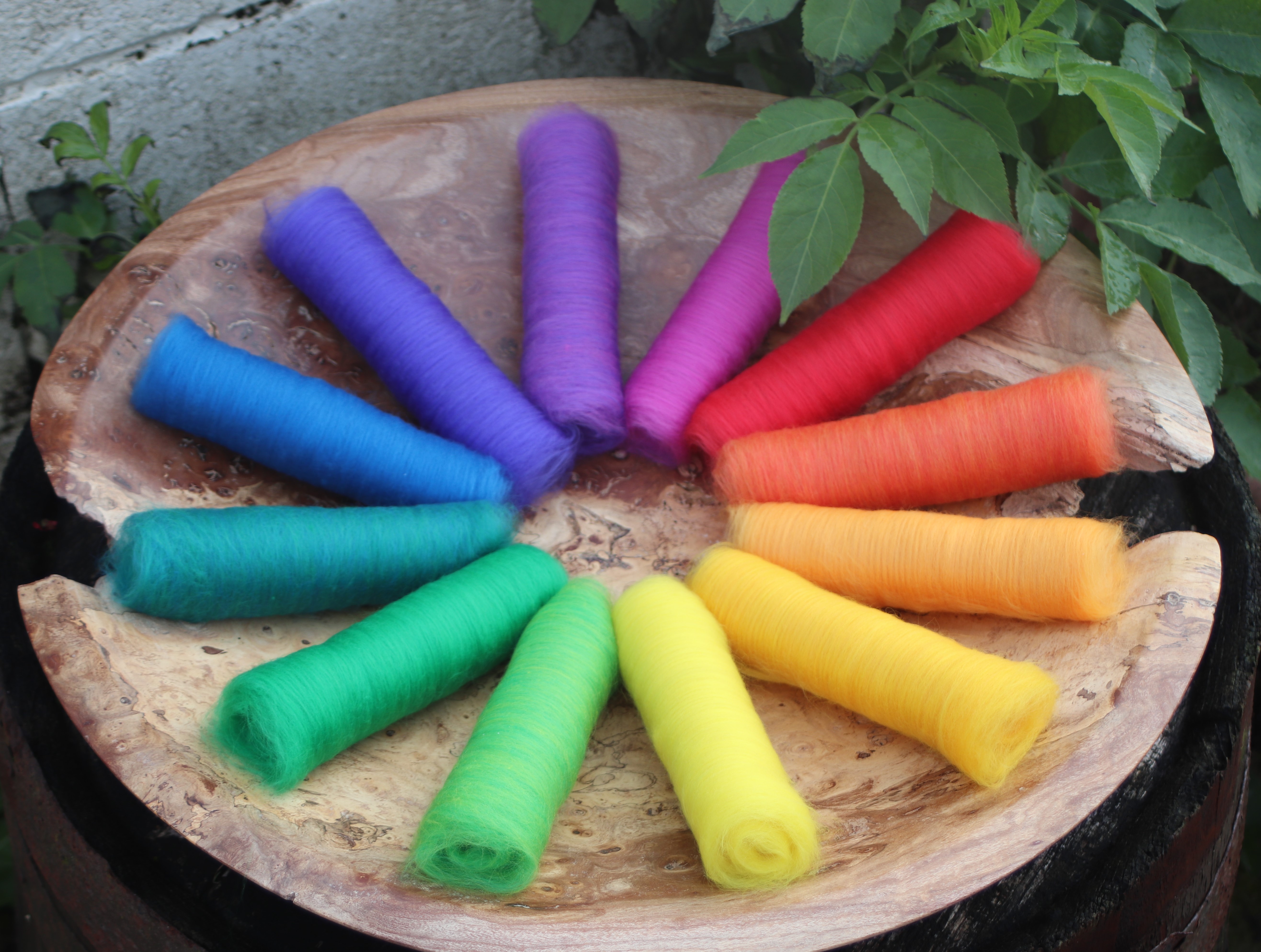 Each batt is 20g of blended 21 micron merino. Together the batts make up a total of 240g of lovely soft, fluffy merino.
