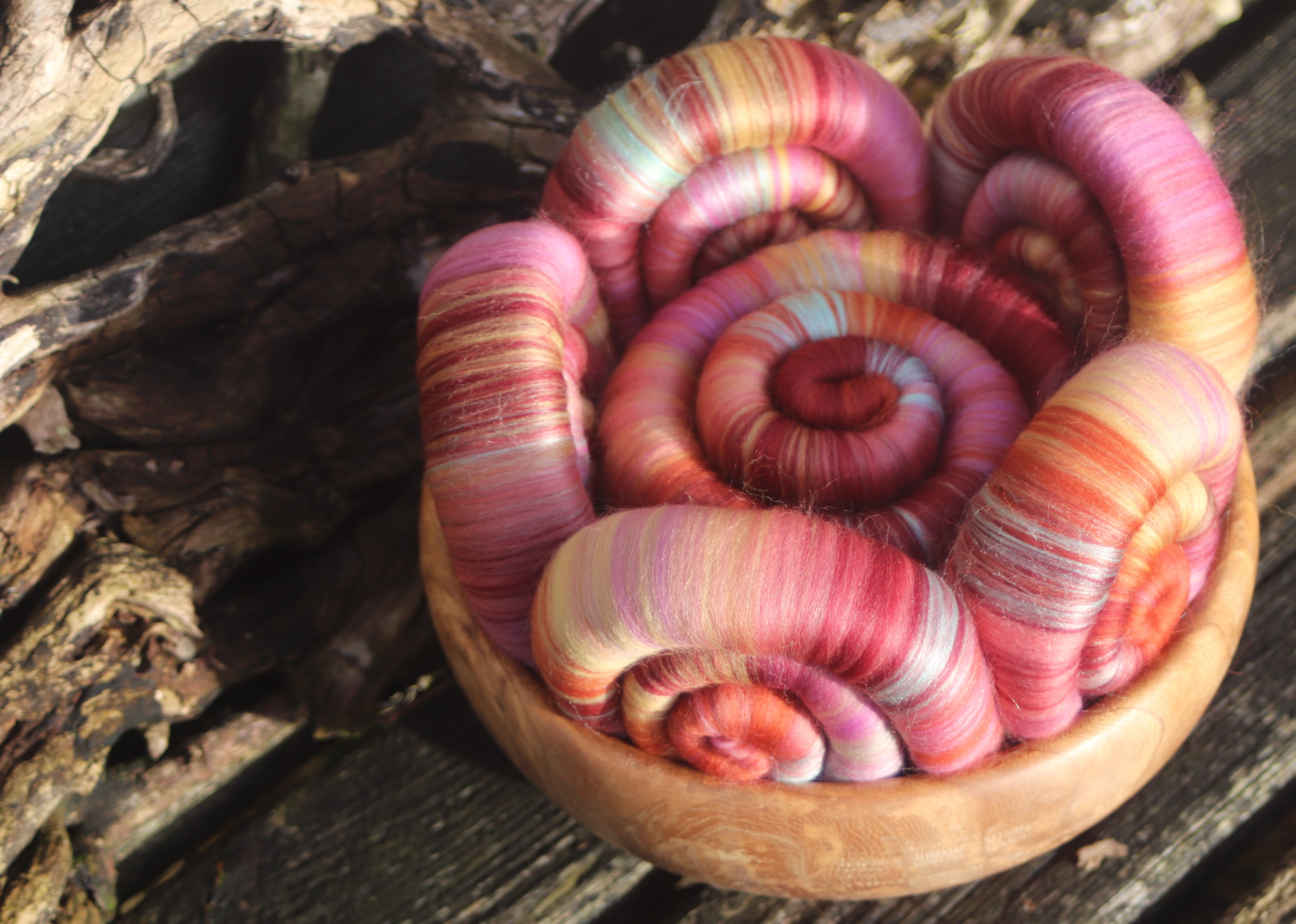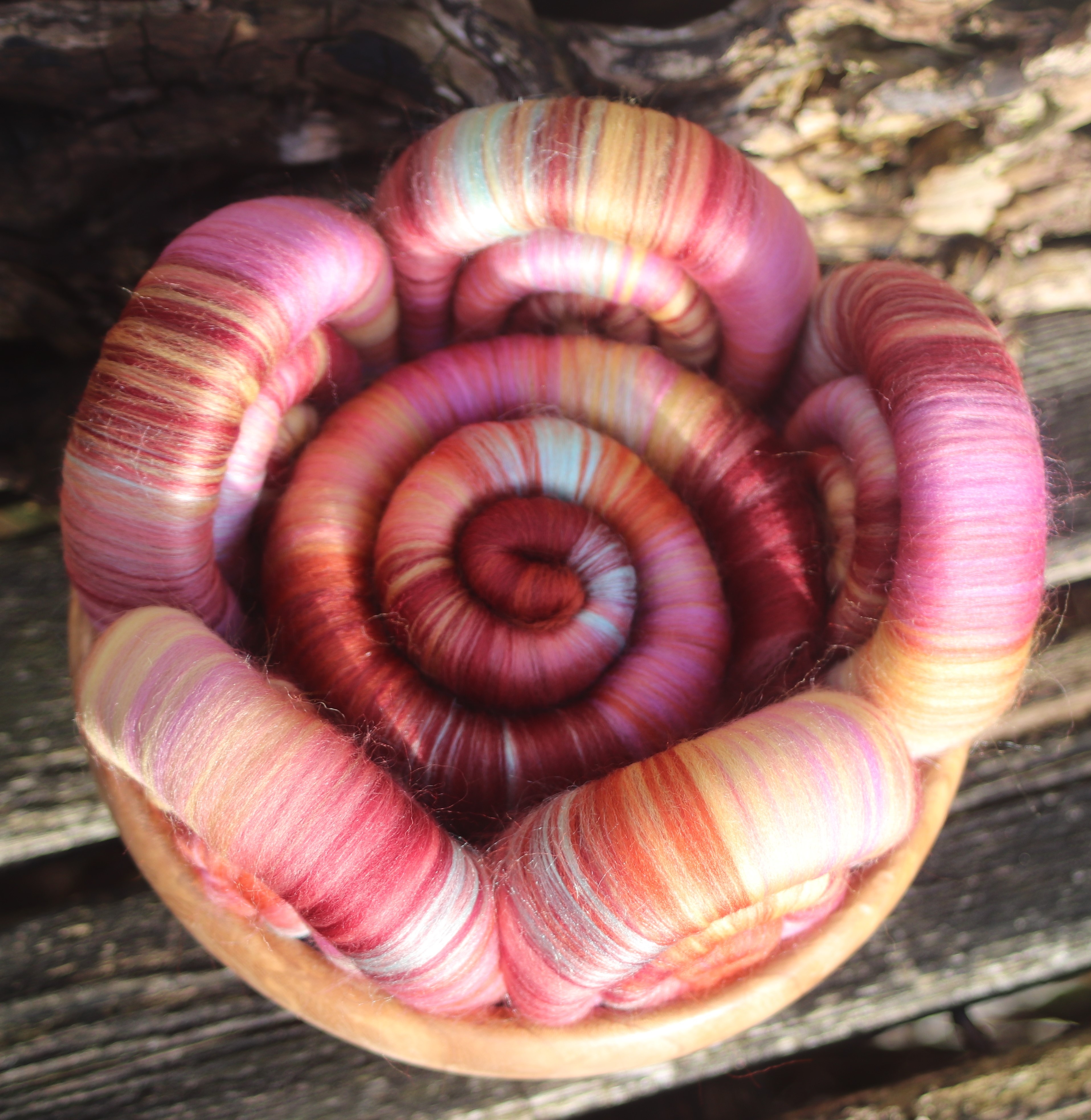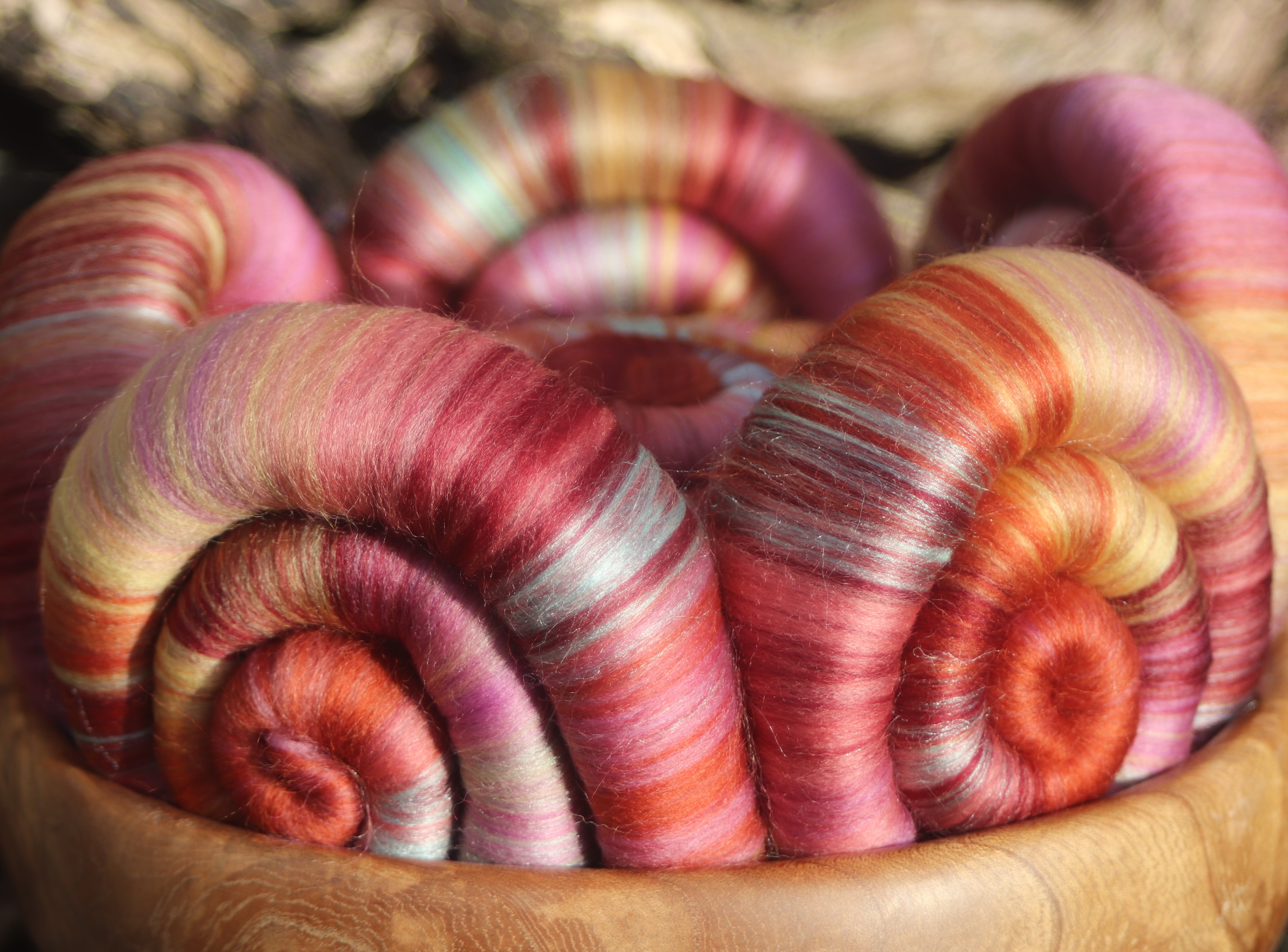 I used 21 micron merino, with pops of light jade tussah silk as the highlight.