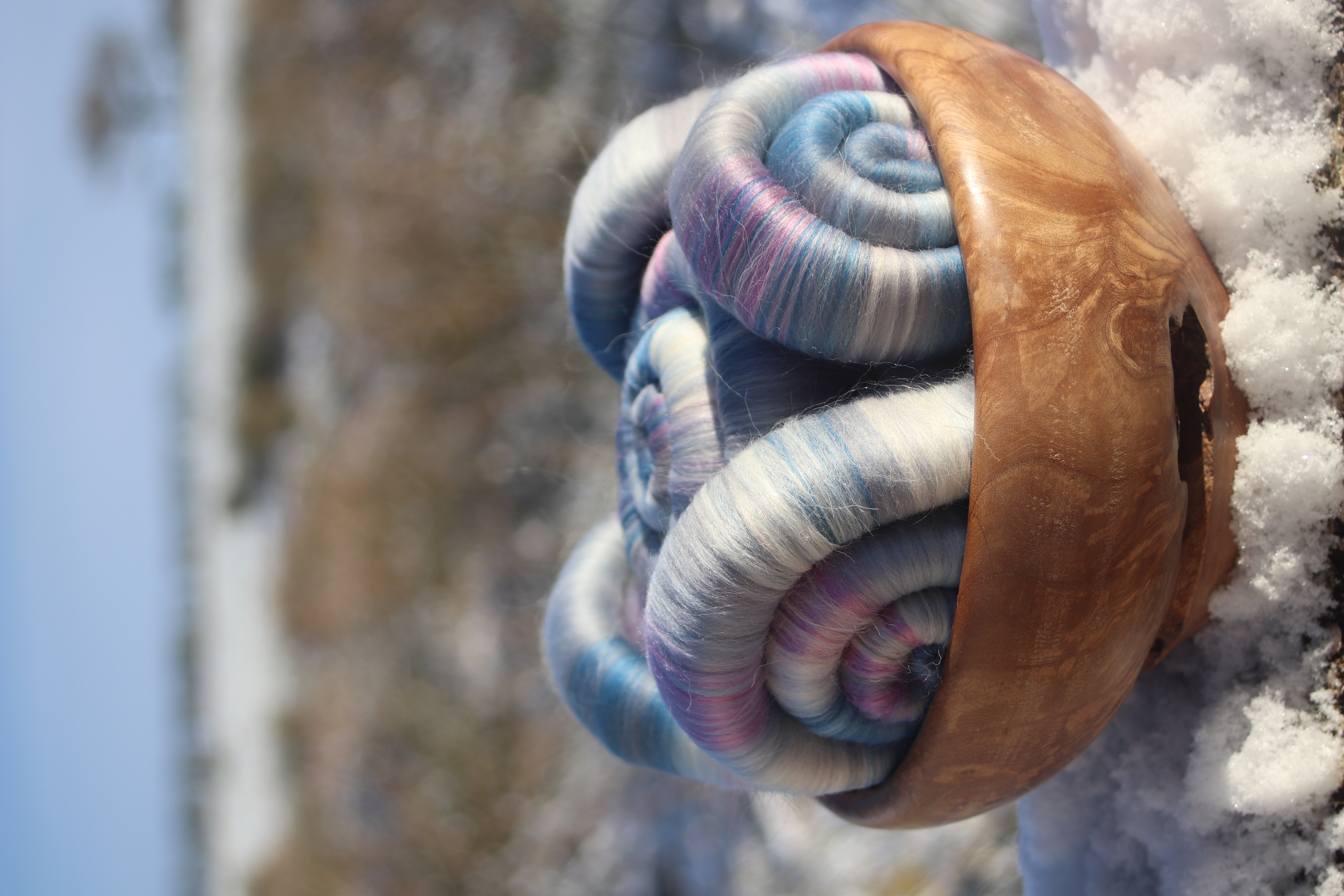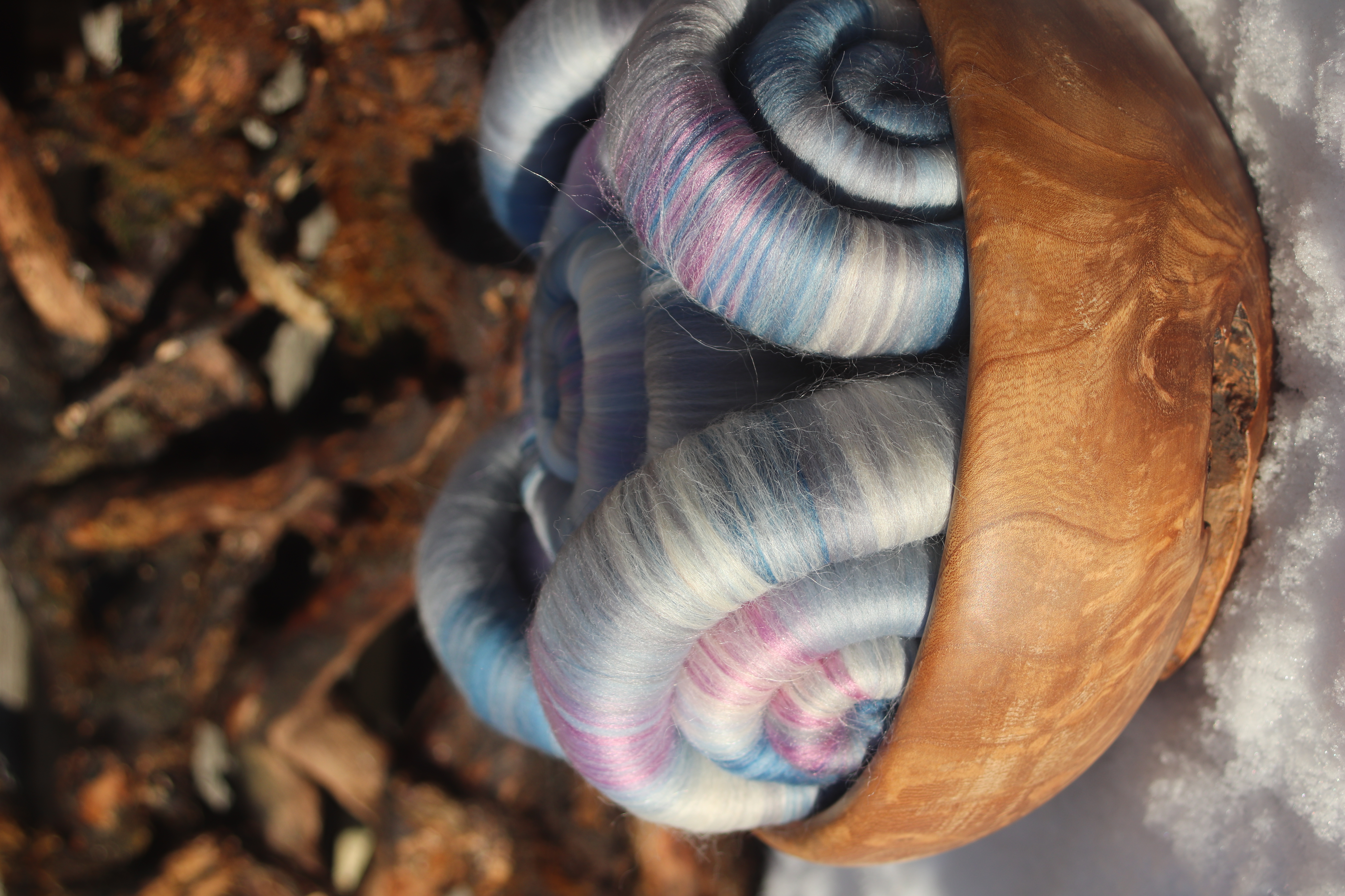 These rolags are made from 21 micron merino, 18.5 micron merino in shades of grey and blue, with plenty white babby llama - and hints of dusky pink tussah silk.