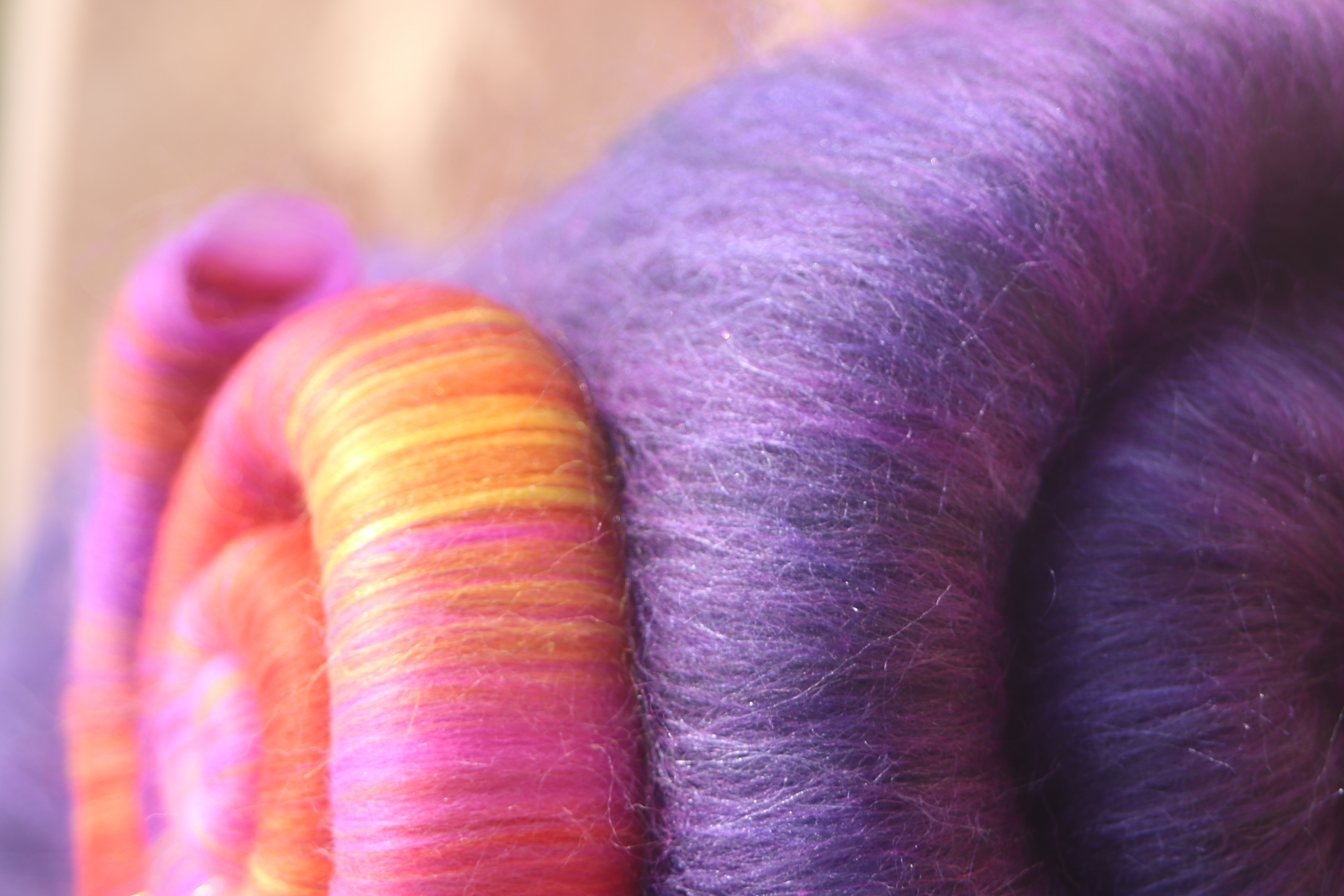 The final photograph shows how this colourway looks with a Phoenix Arising rolag.