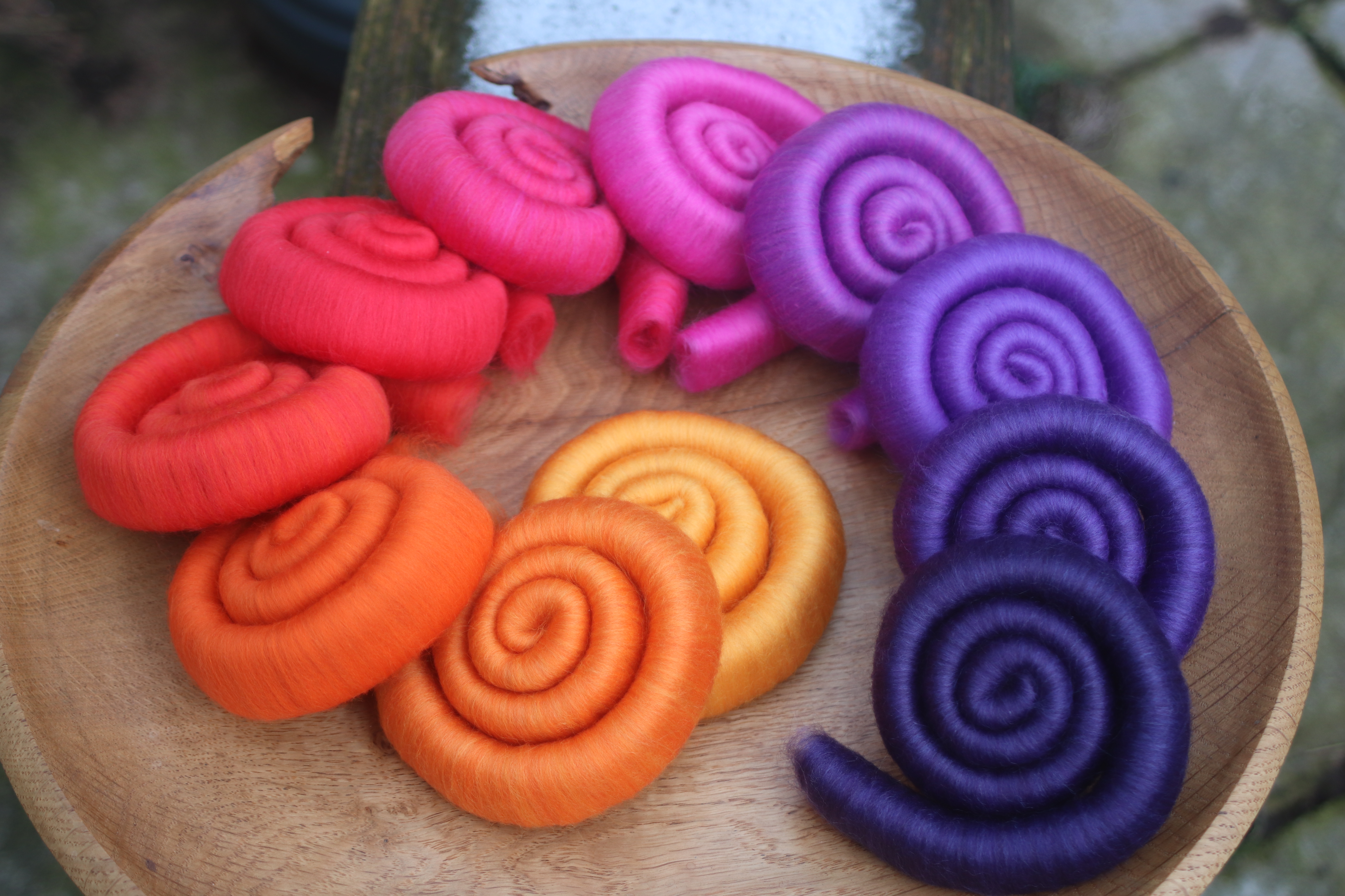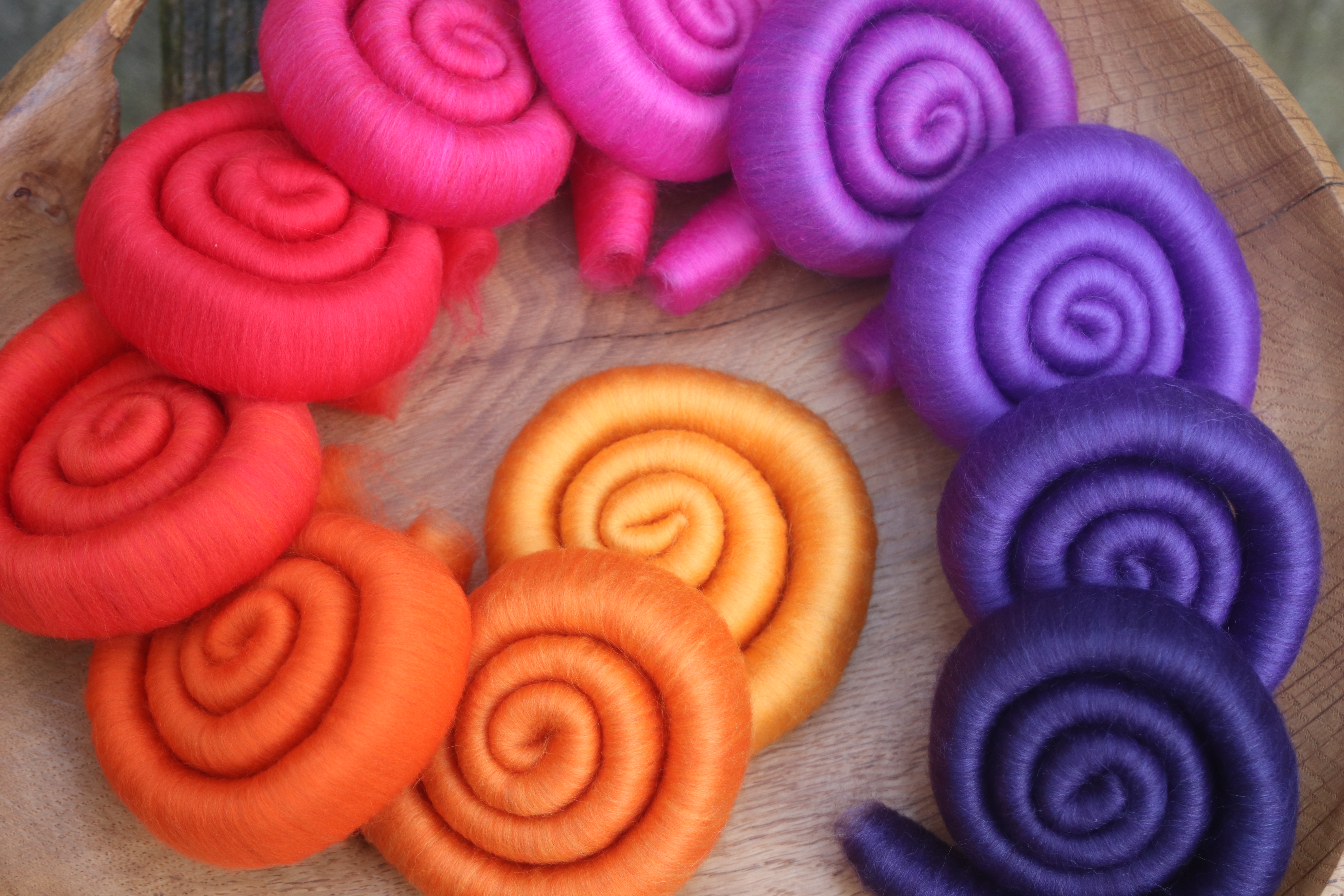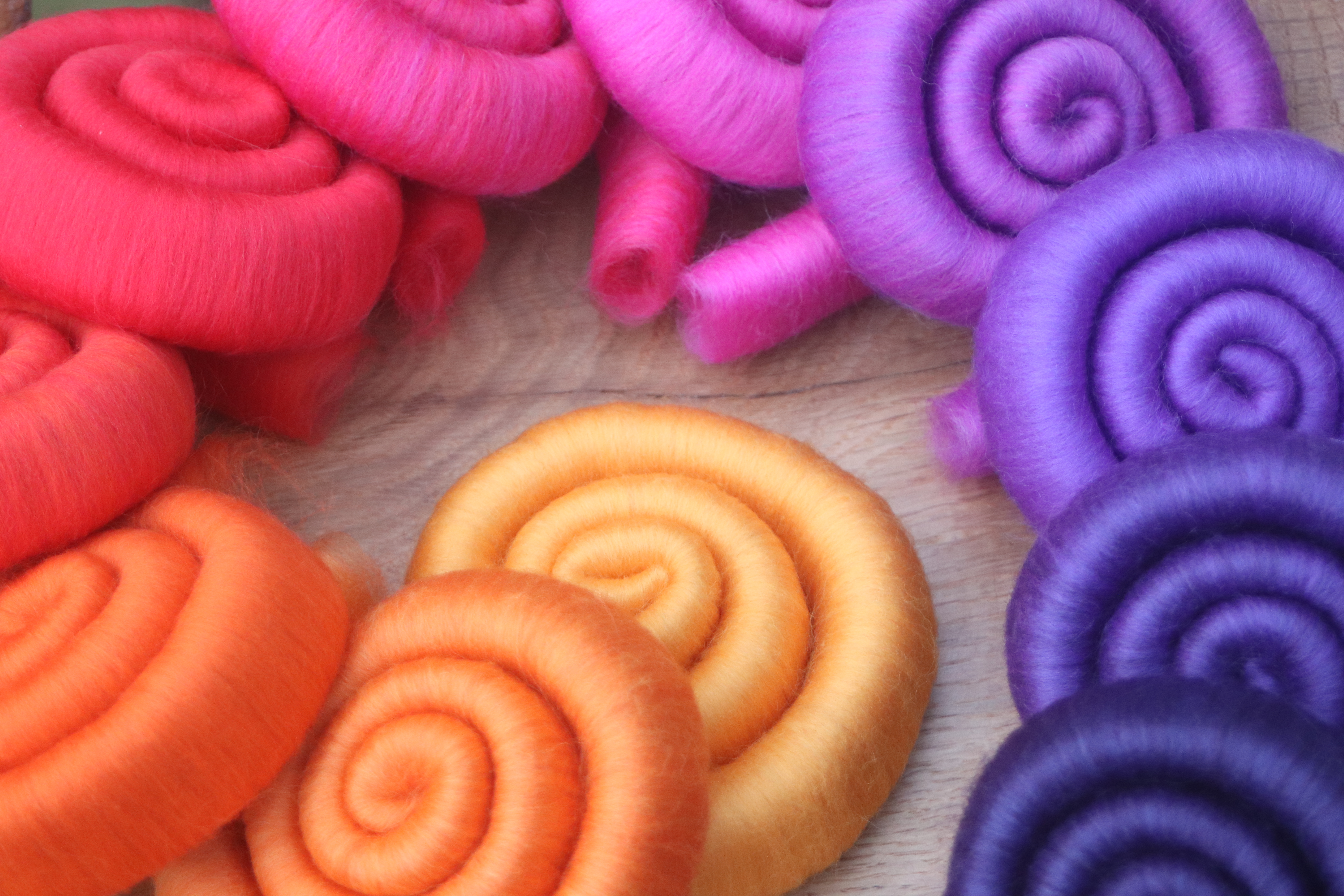 This gradient is a blend of 11 shades (each rolag being approximately 10g) made up from soft, 21 micron merino.