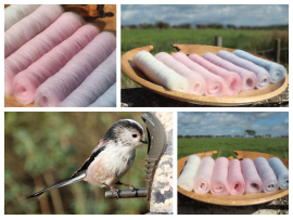 The BFL fibres and the silks are extremely soft with a long staple length. Yarn spun from this fibre will be next to the skin soft and have a wonderful shimmer and drape. Excellent for items like scarves or shawls.