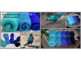 The batt set in the photograph shows a 150g gradient made from 2/3 superfine BFL as a base, blended with 1/3 silk.