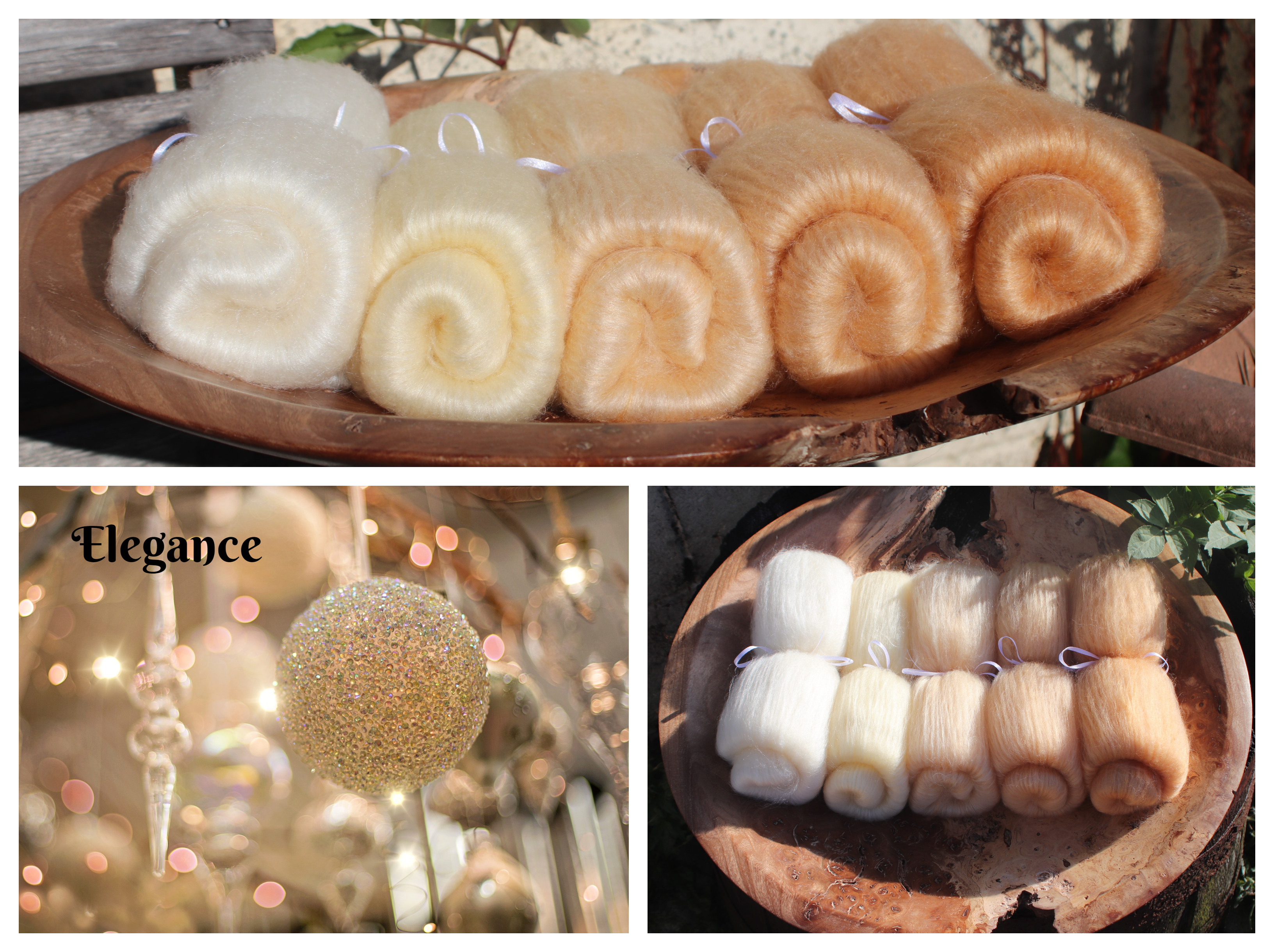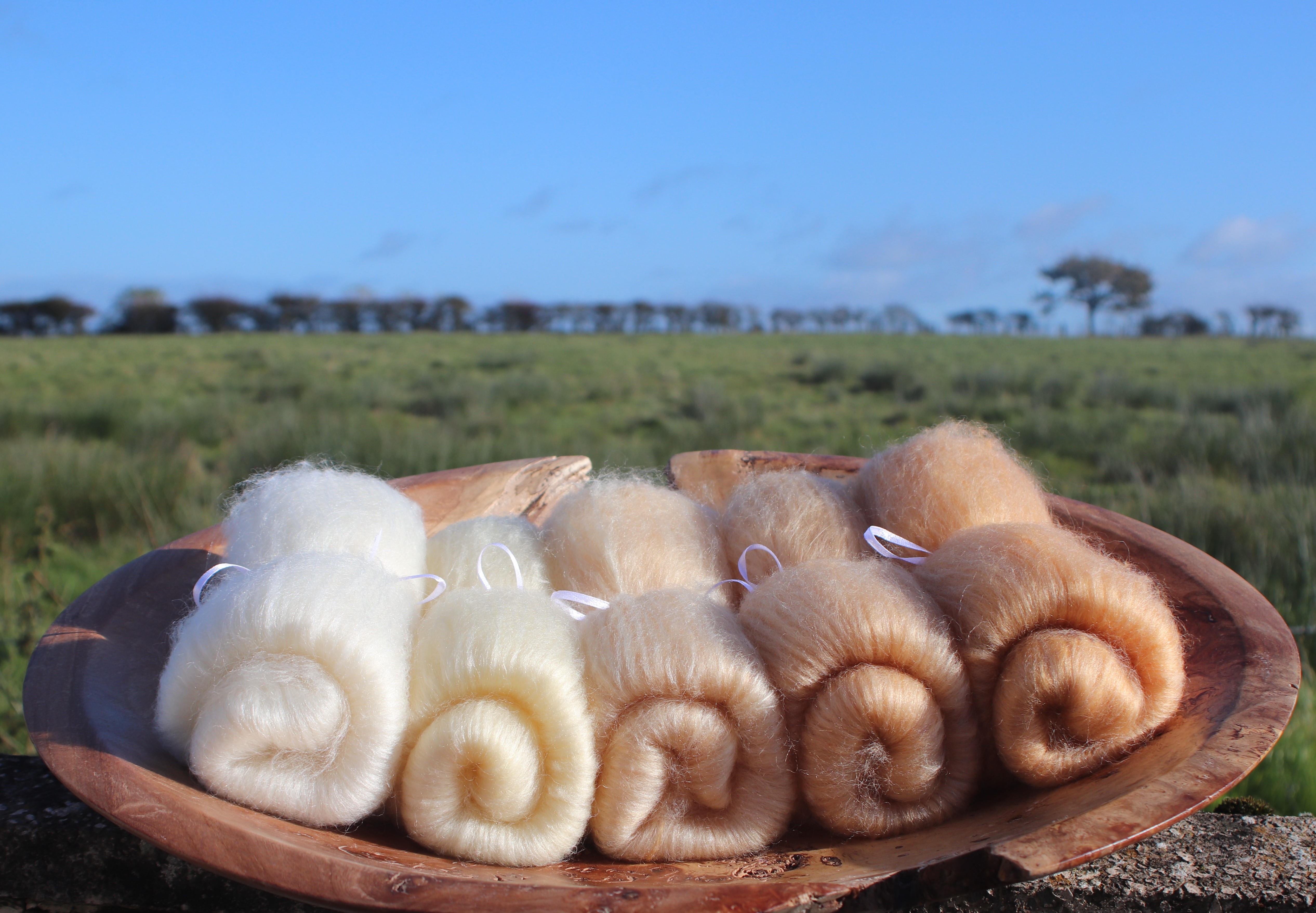 The BFL fibres and the silks are extremely soft with a long staple length. Yarn spun from this fibre will be next to the skin soft and have a wonderful shimmer and drape. Excellent for items like scarves or shawls.