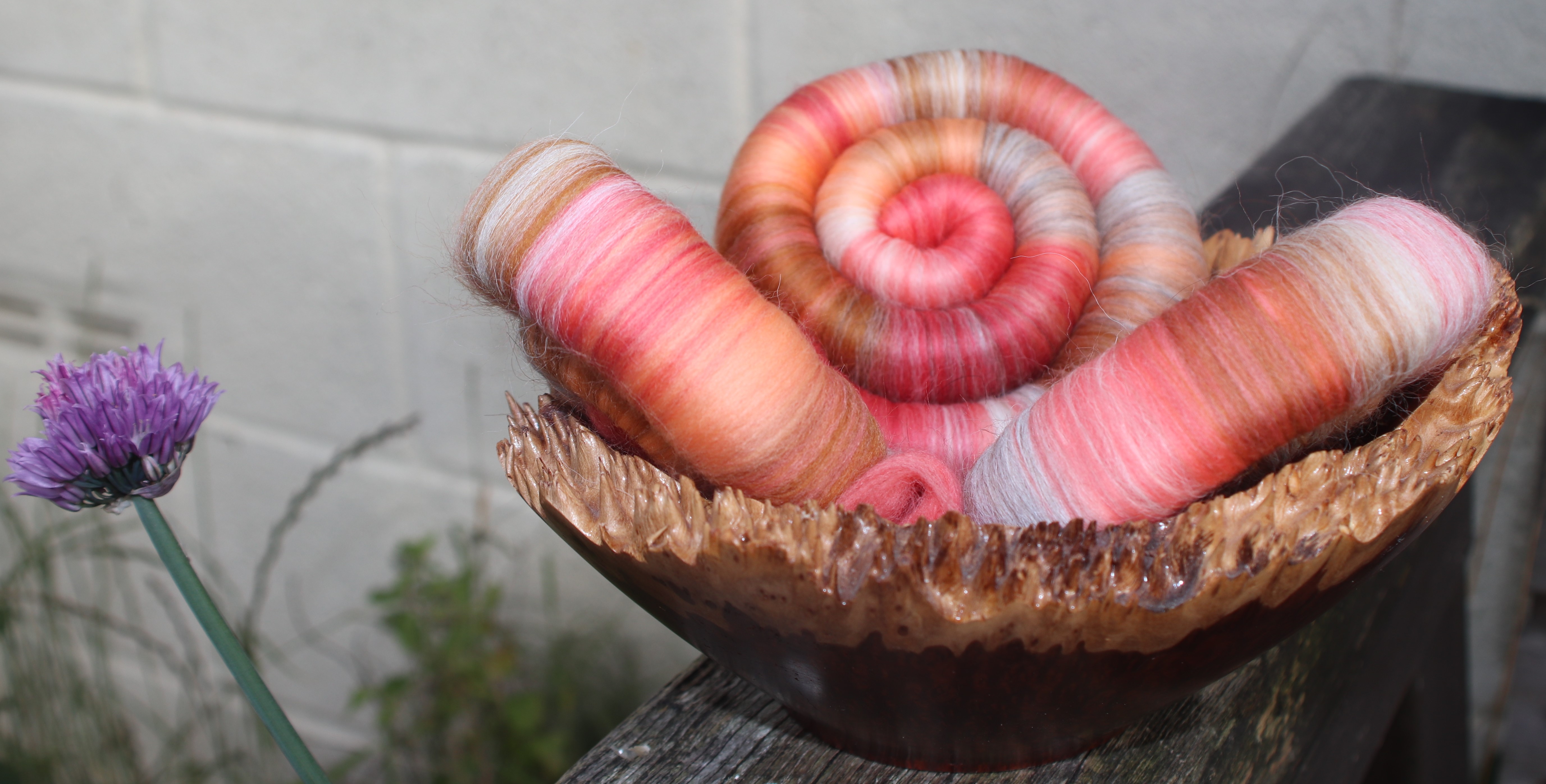 I have blended together soft 21 micron merino in rosey tones to reflect the colours of the beautiful sky, and then mixed in with those fibres wonderfully soft white baby llama and light grey baby alpaca. Both the llama and alpaca fibres, when spun will give the yarn a fantastic, soft, misty halo - and will also give the yarn extra warmth and drape.