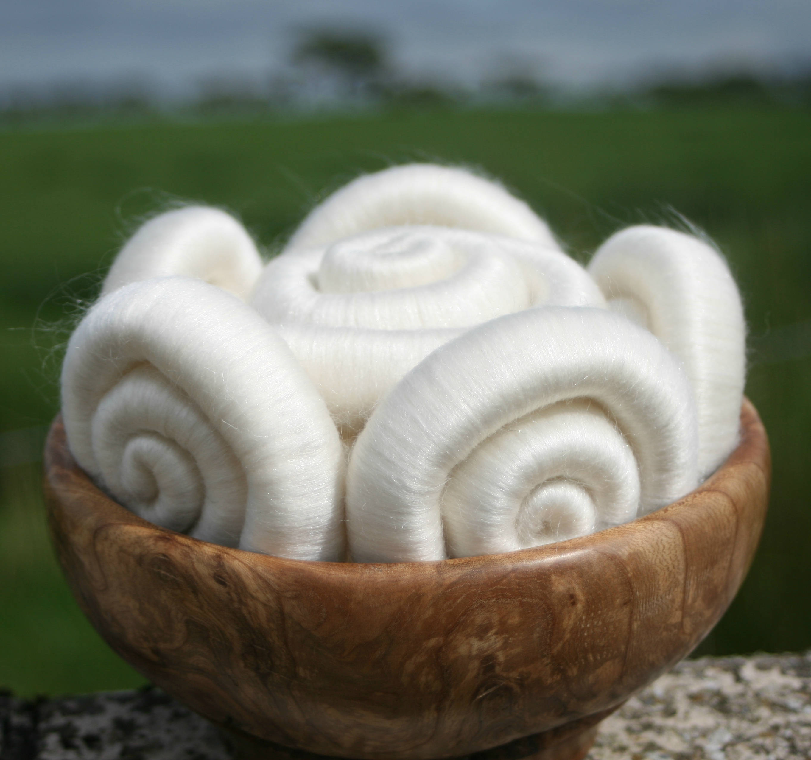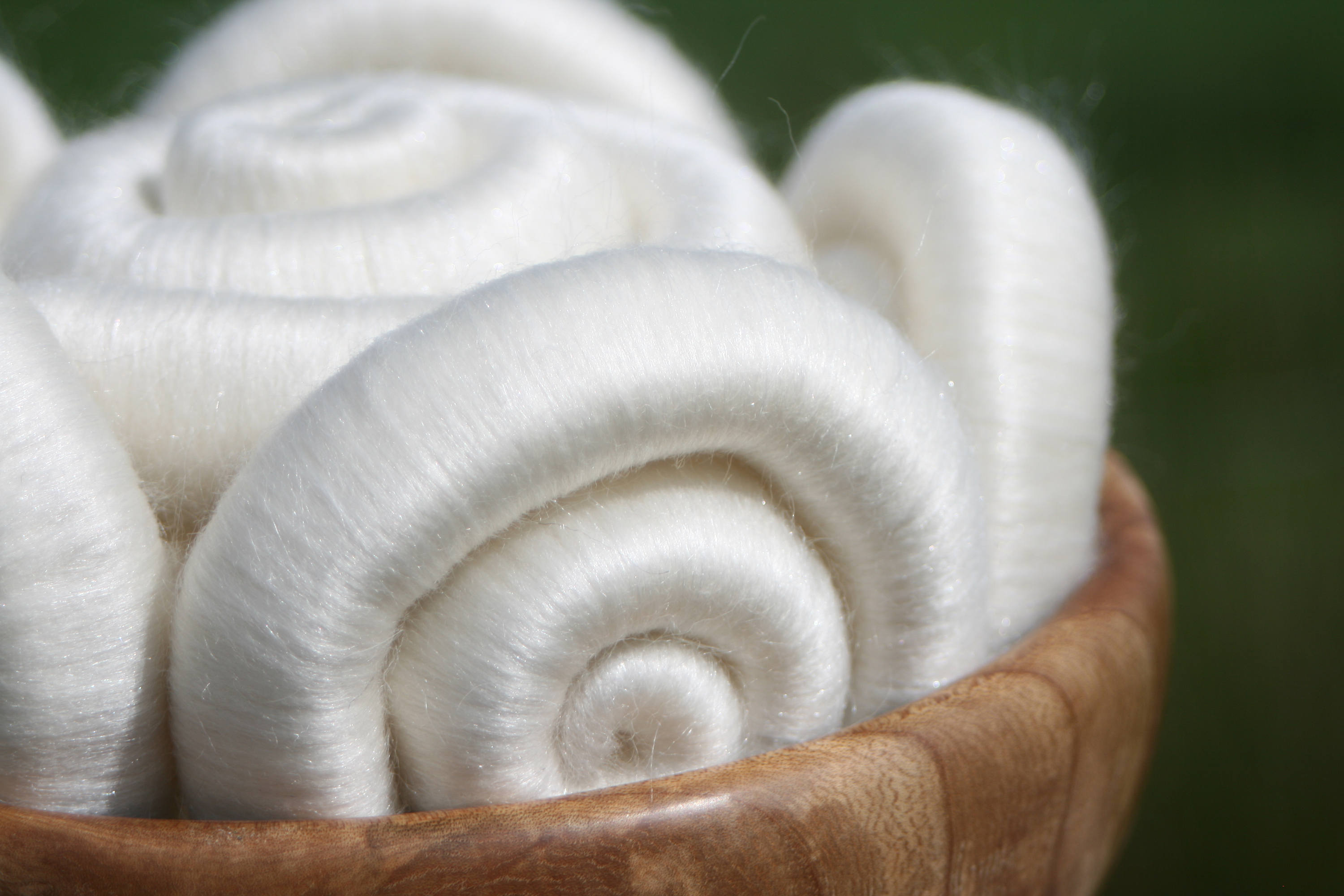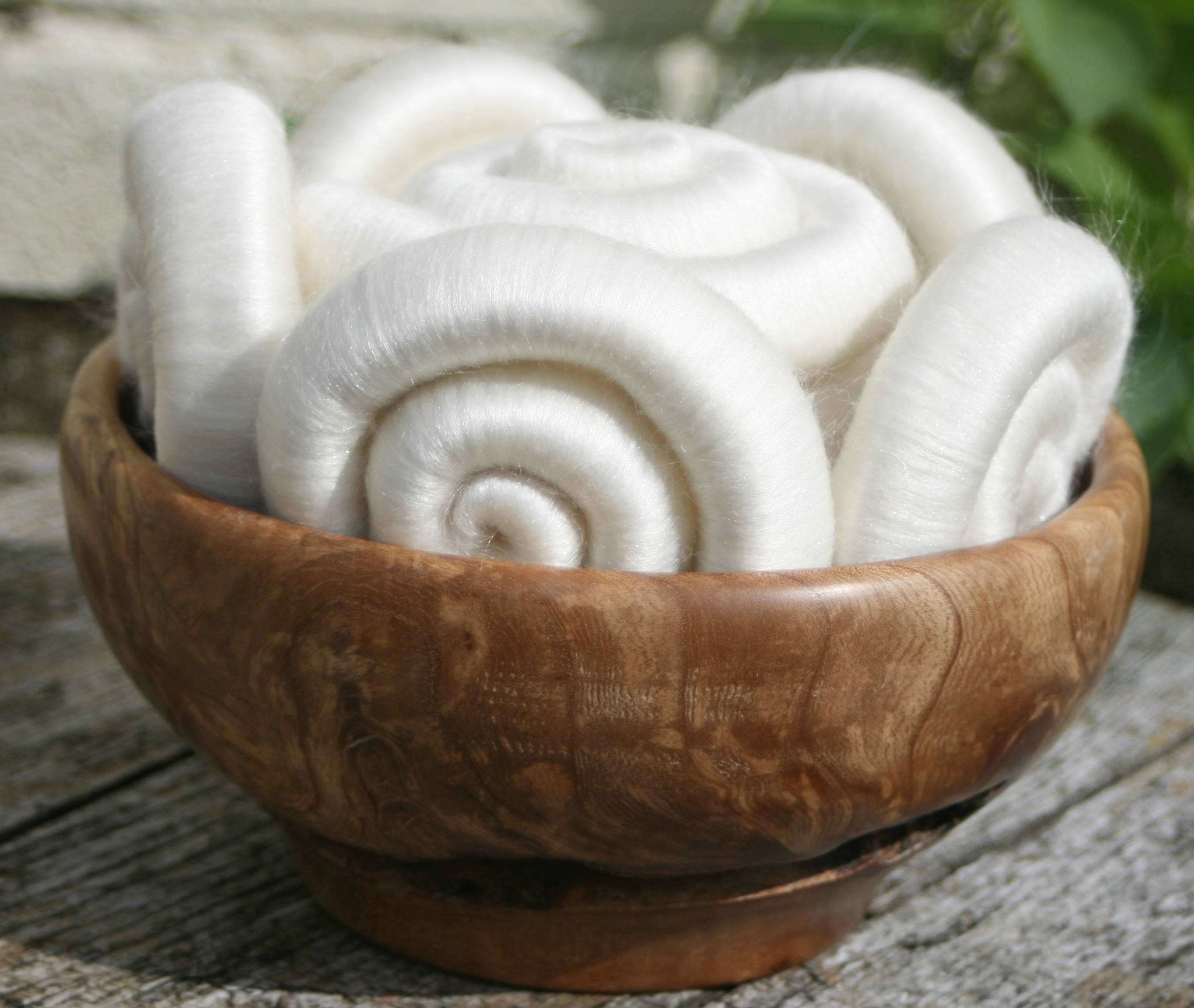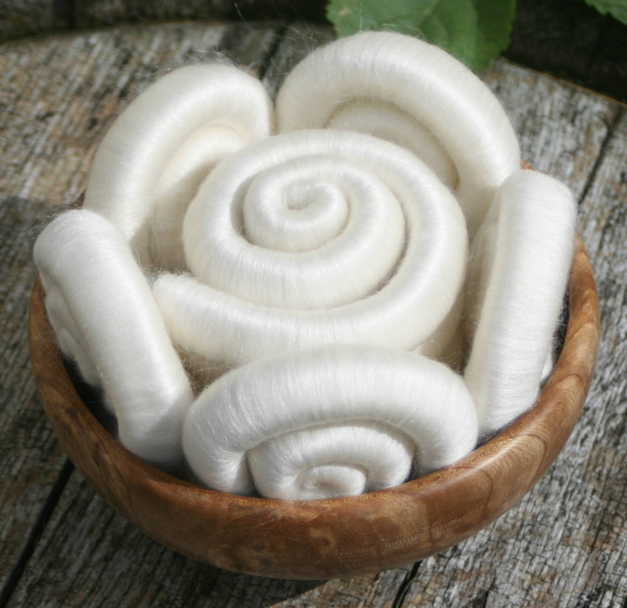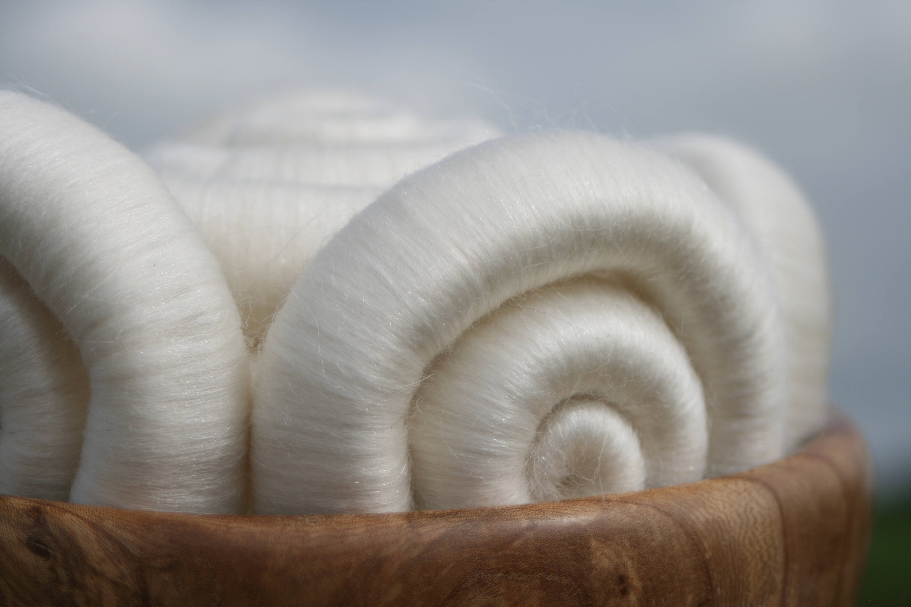 So I took one of my favourite fibres, Polwarth - which is soooo soft, but has a longer staple length than merino. This means that I find it a little easier to spin. I blended it on my drum carder with beautiful white tussah silk, approximately 50:50 ratio, and then for the final bit of sparkle, I blended in some soft Trilobal sparkle. Not enough to overpower the blend, but sufficient to make the blend gleam in the sunlight.