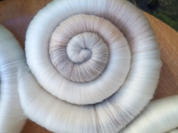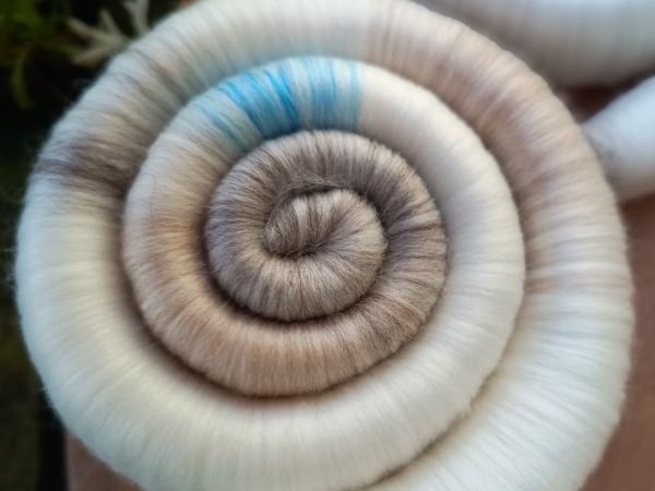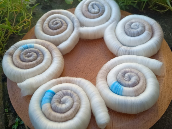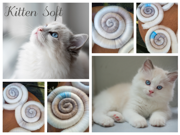 Some of the rolags have had a single streak of blue mulberry silk added, as the silk is the same shade as the eyes on the kittens. You can choose whether you have the silk added ot not - you will not get a mixture of both.