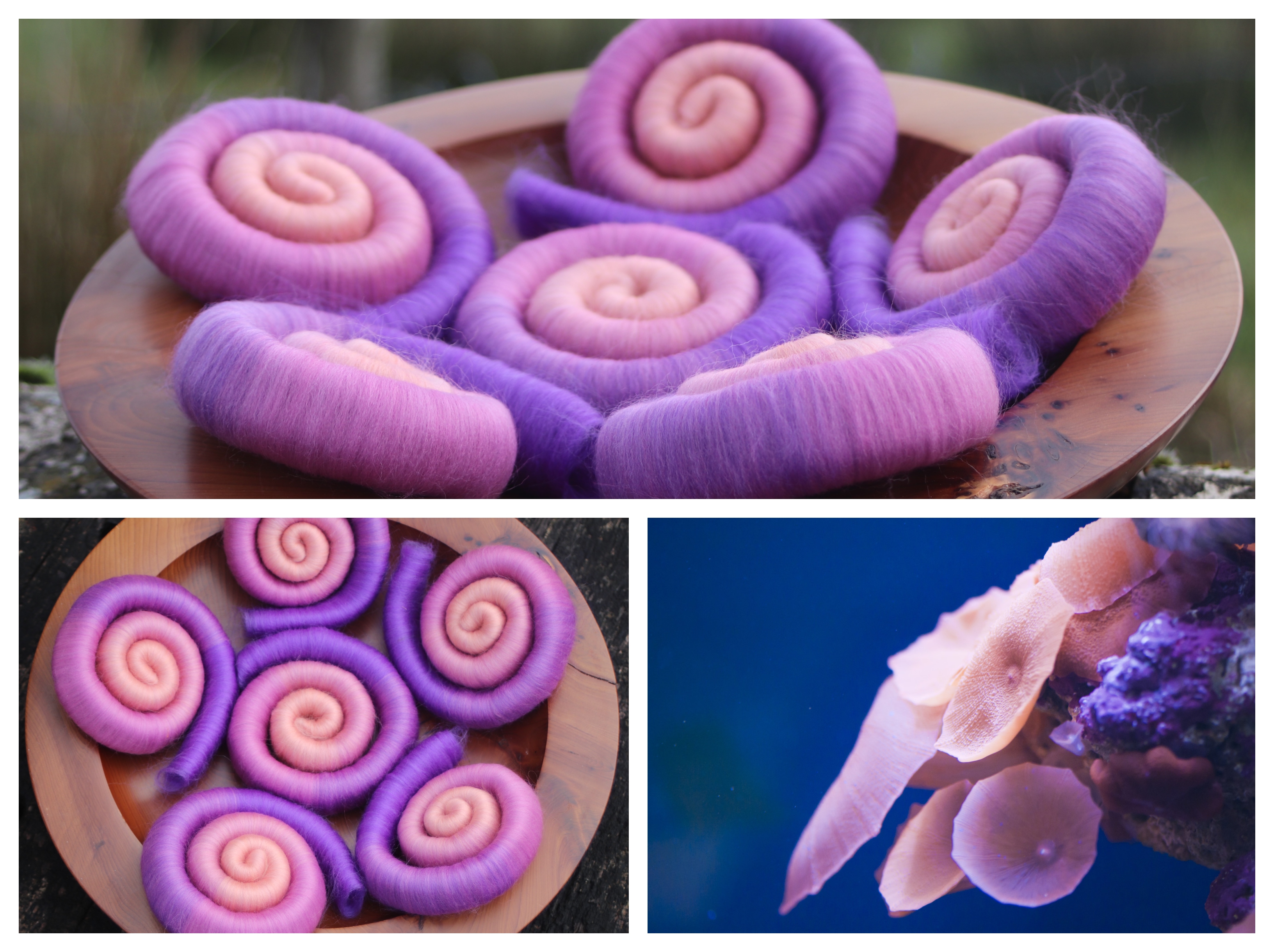 Whilst researching for a custom order, I found a wonderful photograph of a coral polyp in close up. I adored the soft, gentle colours and so carefully blended up shades of 21 micron merino to match the minature builder. It was only when I photographed the rolags that I noticed the similarity to the Antelope Canyon Rolags. However, this blend is far softer and dusky in shade than the bright vivacious Antelope Canyon colourway.