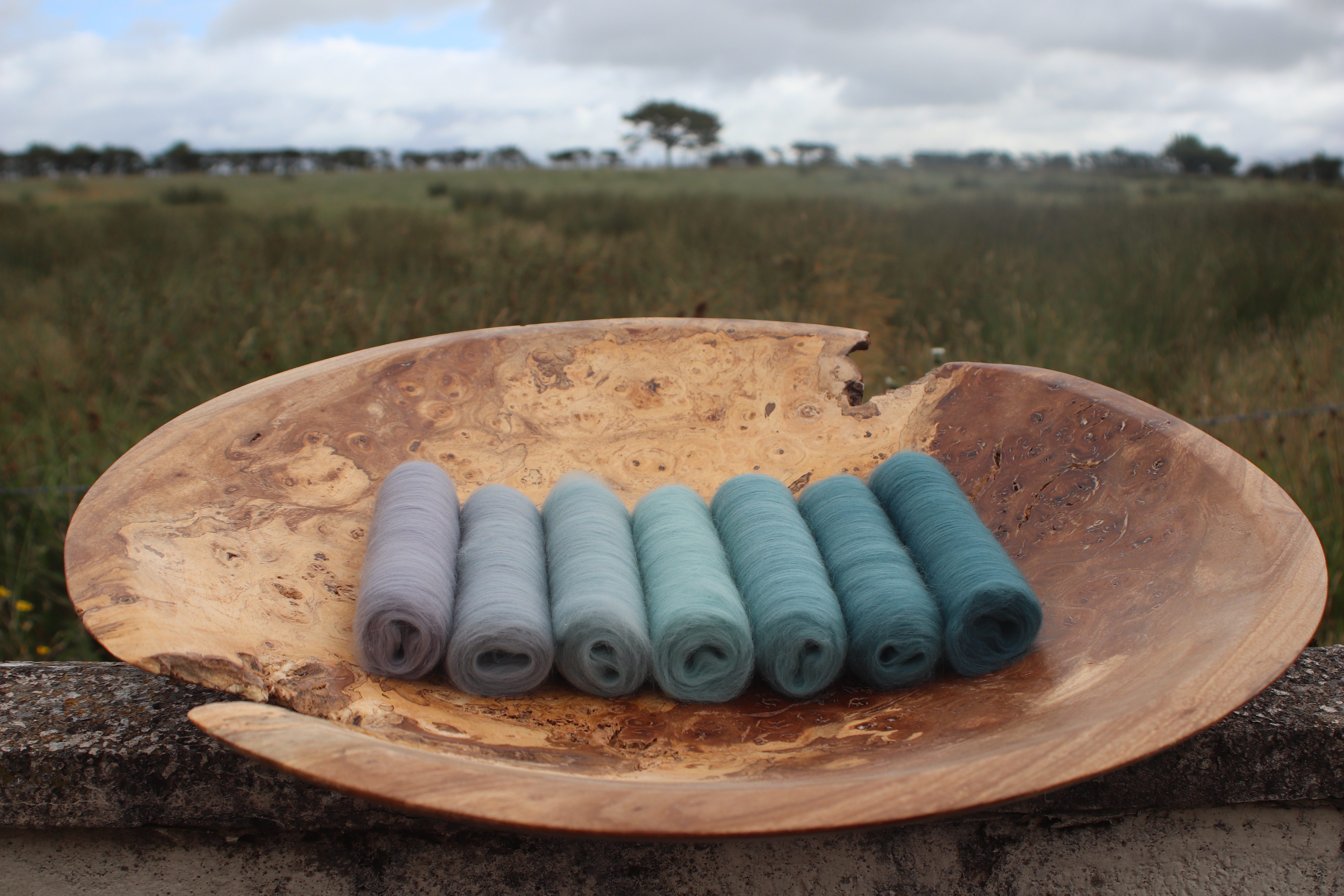 This gradient is made completely of superfine 18.5 micron merino using gentle dusky shades of grey and teal. This will spin up to produce a beautiful yarn, soft and warm, wonterful for winter walks.