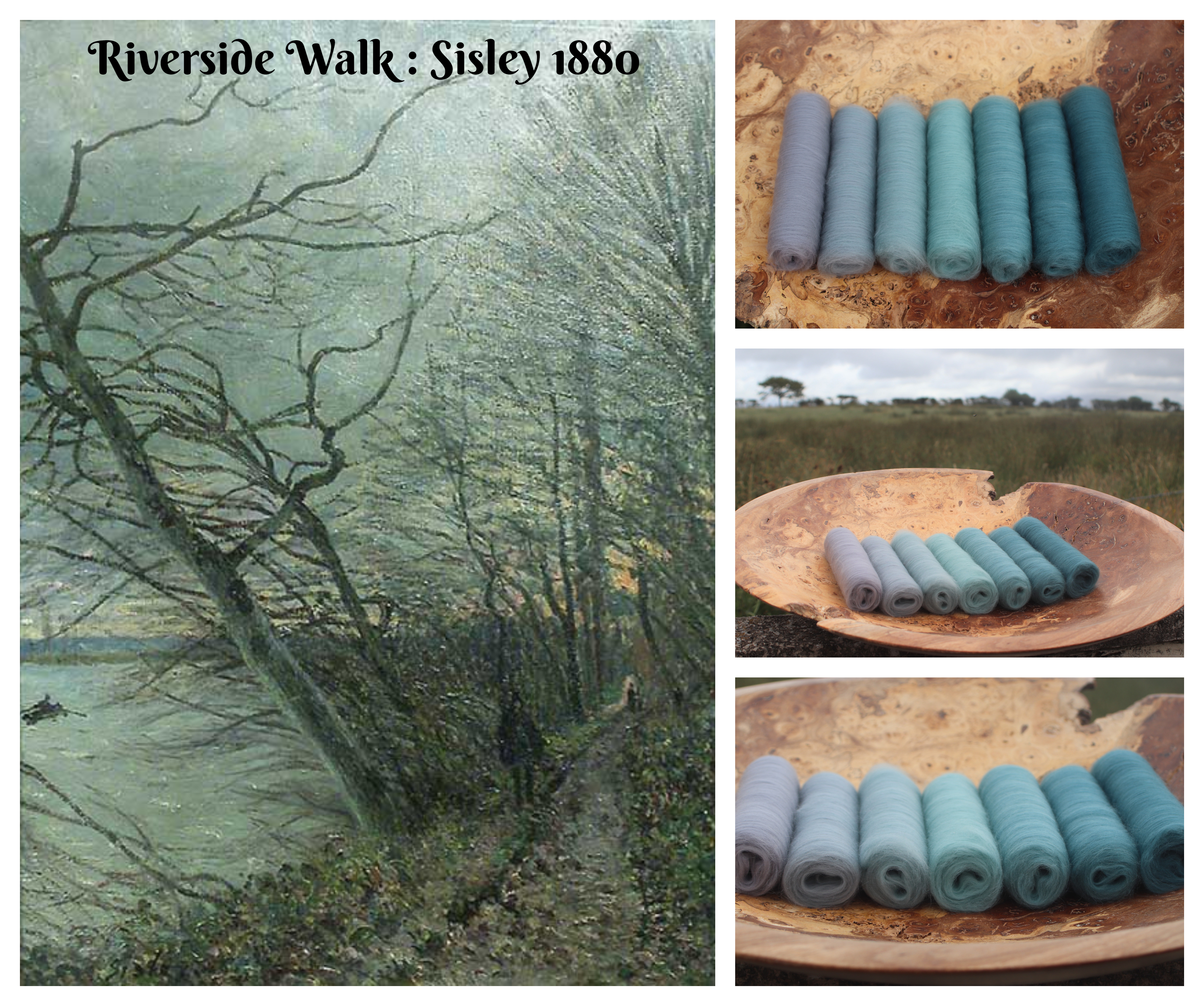 This colourway is based on an 1880 painting by a British French artist called Alfred Sisley (1839-1899). He maintained the impressionist painting style (mainly painting outside) throughout his life, and is most famous for painting tranquil landscapes in pale dusky shades.
