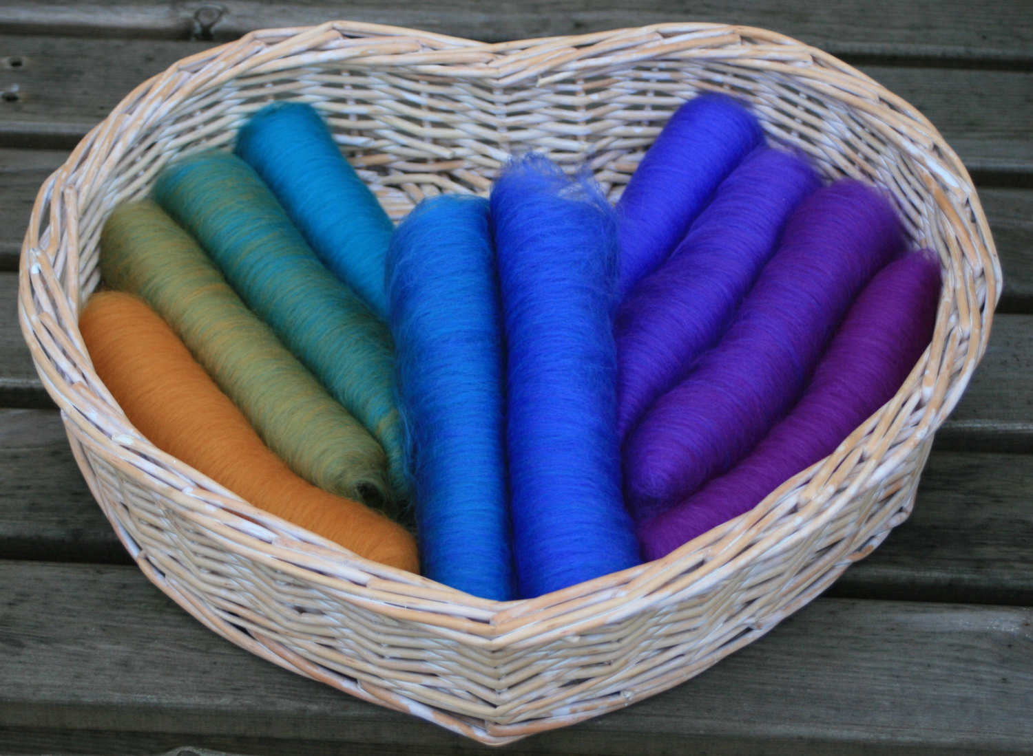 You will receive a total of 150g, of blended 21 micron soft merino fibres, in 10 separate merino batts. These batts will allow you to produce a next to the skin soft yarn. I find it easier to produce gradient yarns using batts because I can easily separate each coloured batt into sections to make the number of plies required.