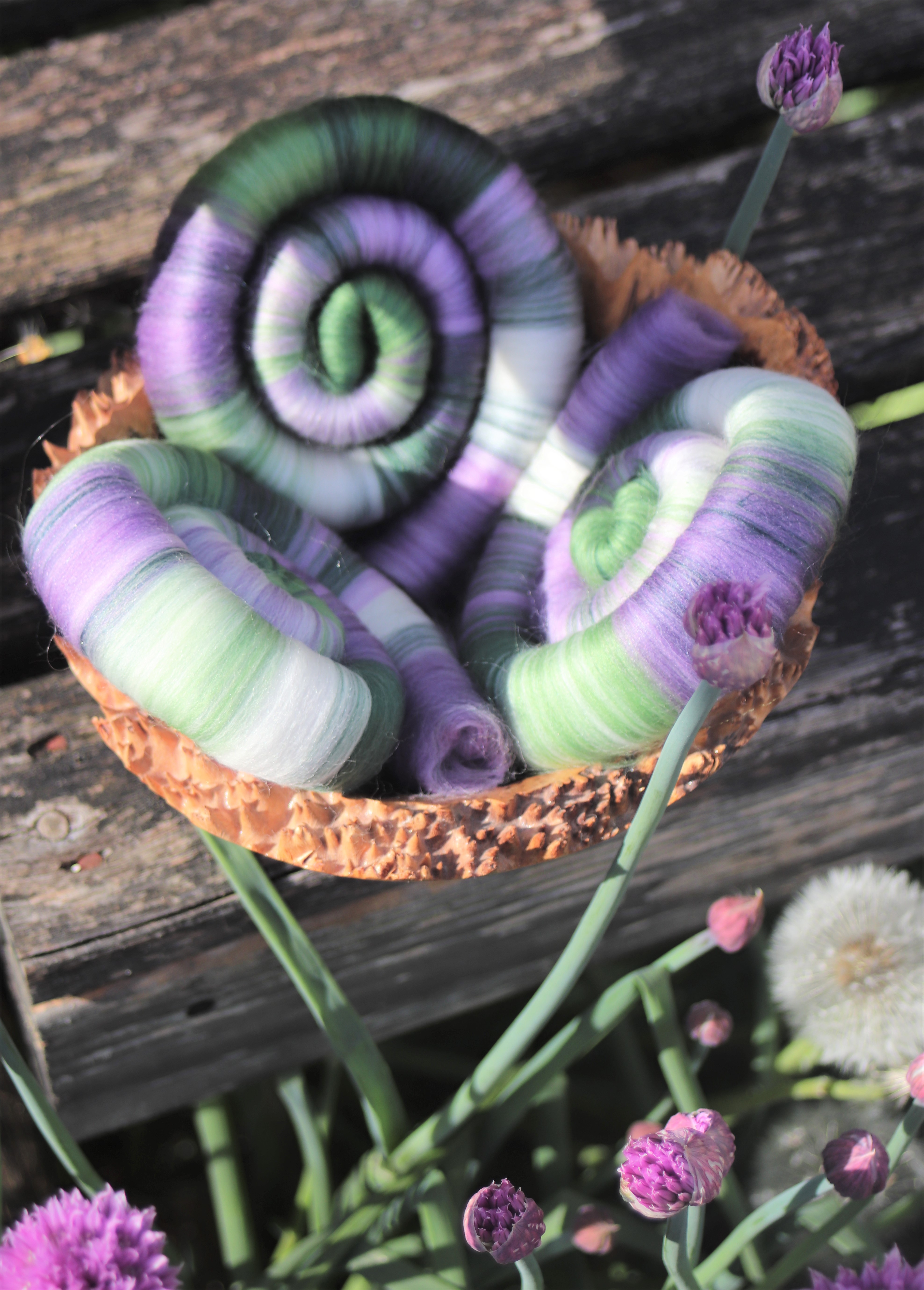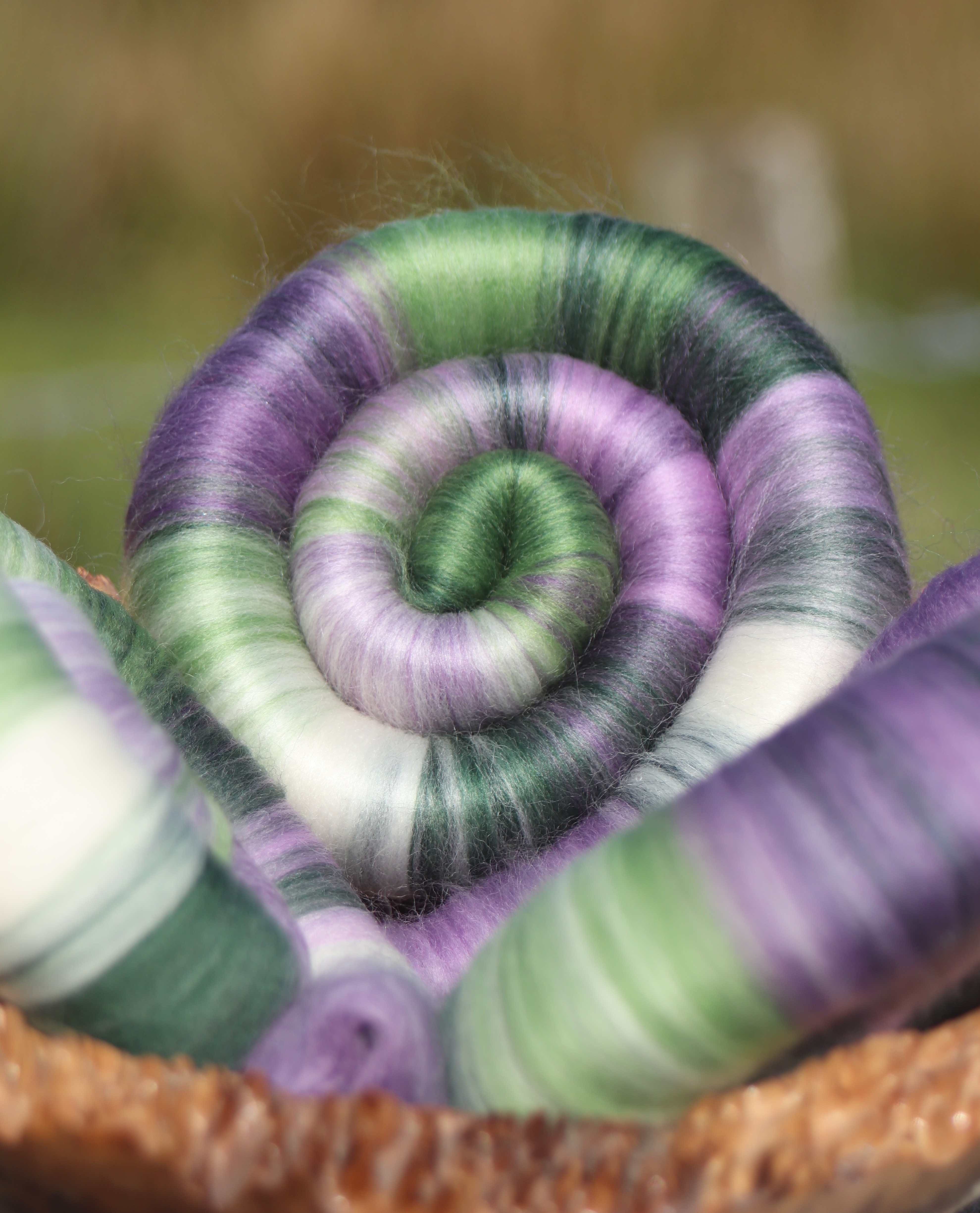 The ‘Saturn’s Rings’ rolags are made of merino, superfine merino, cashmere with a little Italian tussah silk added.