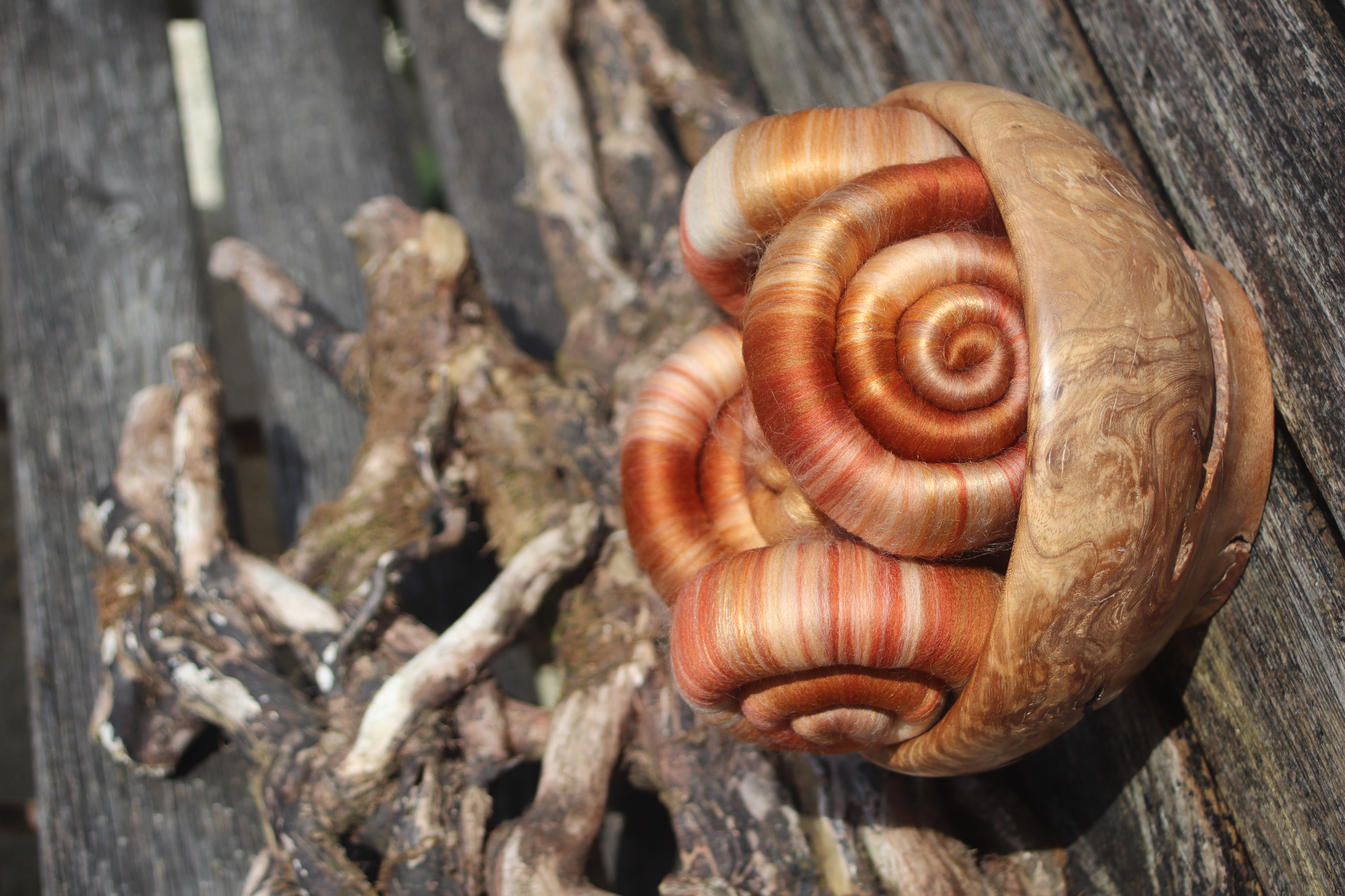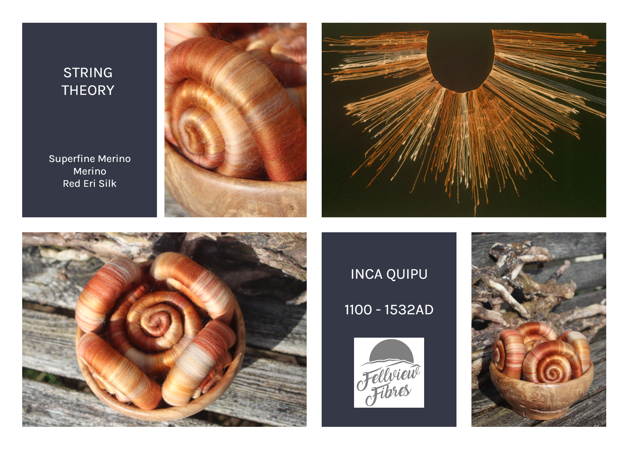 These quipu inspired rolags are made from superfine merino, merino, and luxurious red eri silk.