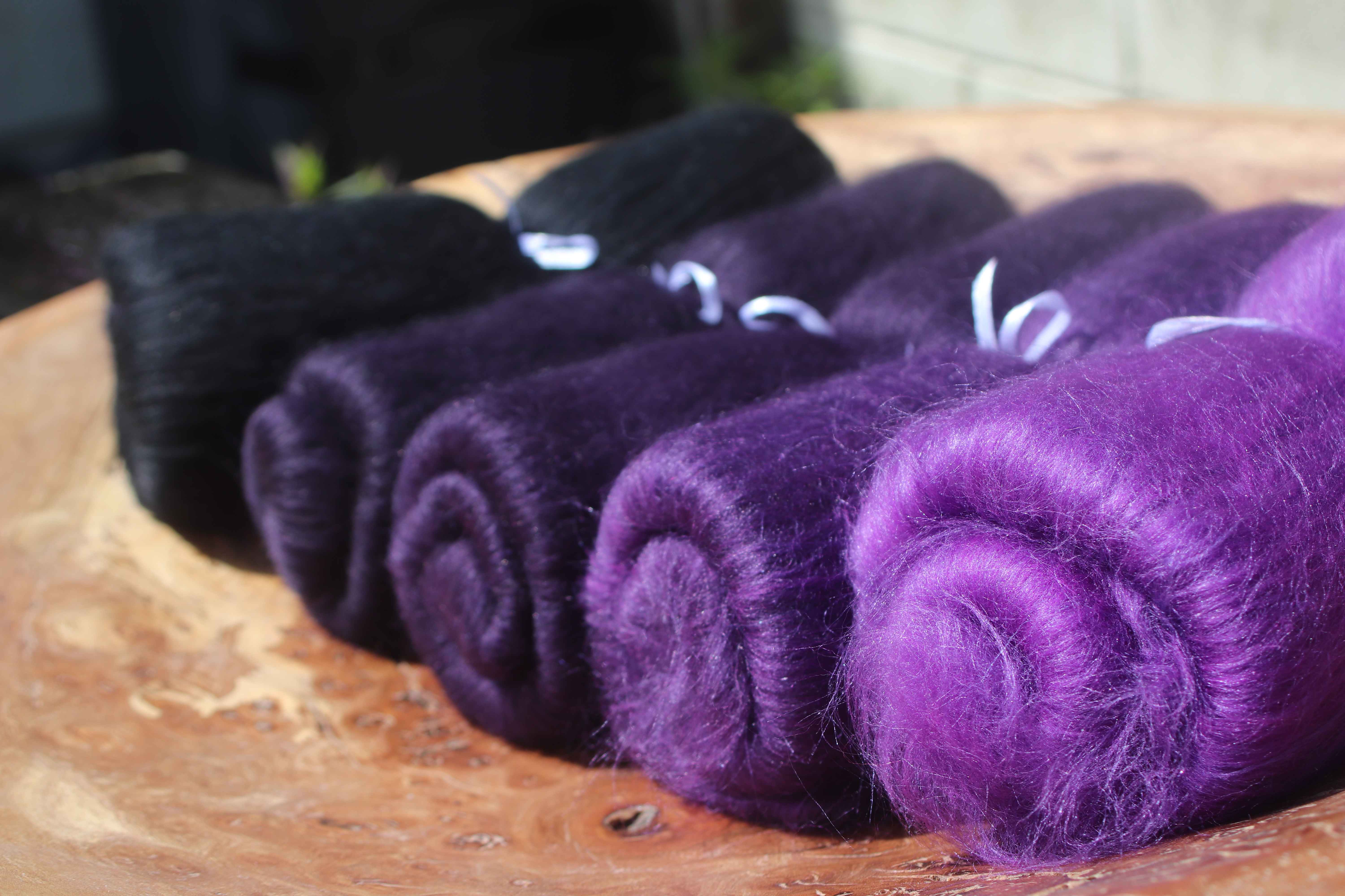 This gradient batt set is made from 2/3 merino blended with 1/3 tussah silk. This gives the fibre, once spun, a beautiful sheen with lovely drape.