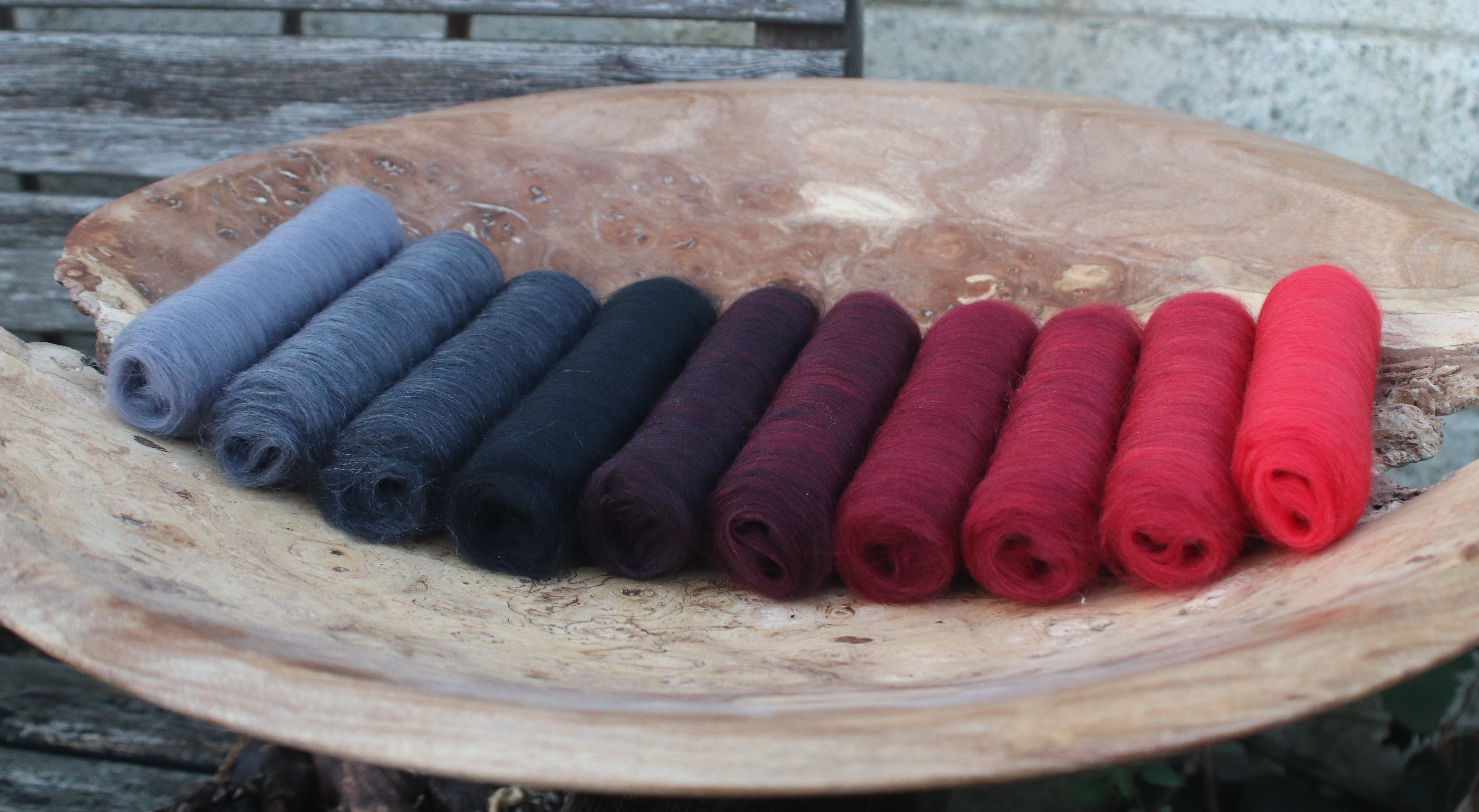 The transitions move from mid grey, to black to ruby to scarlett.