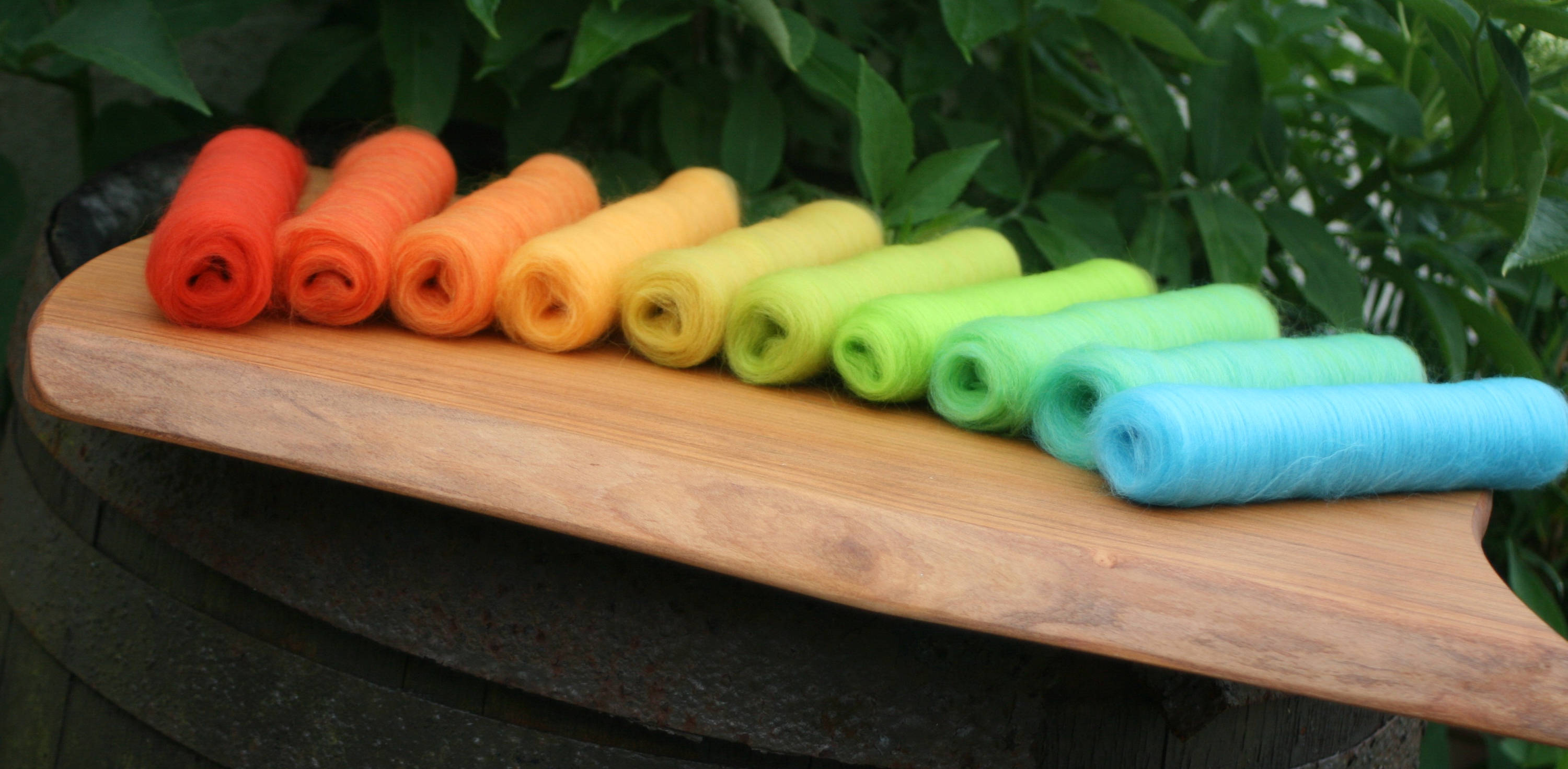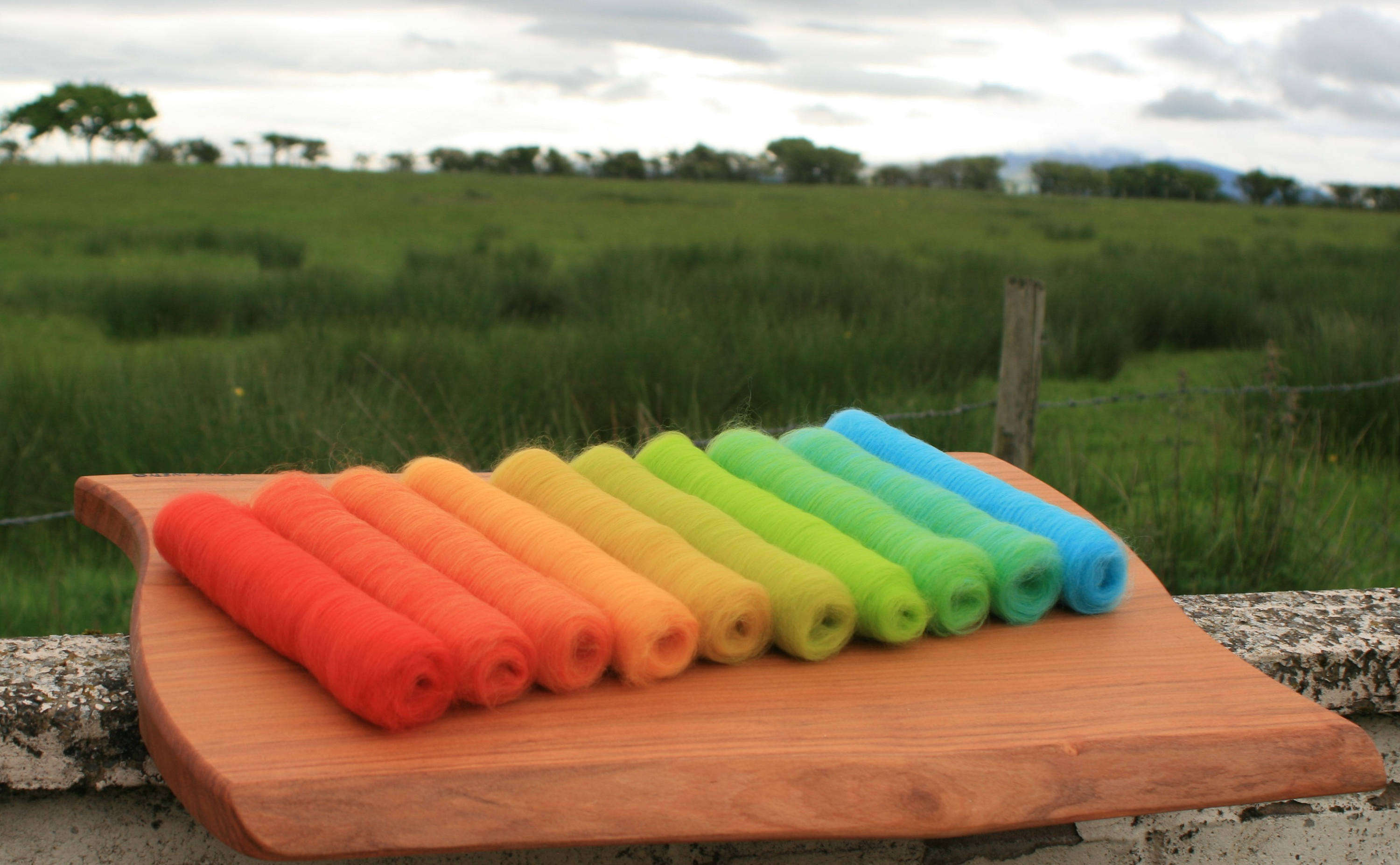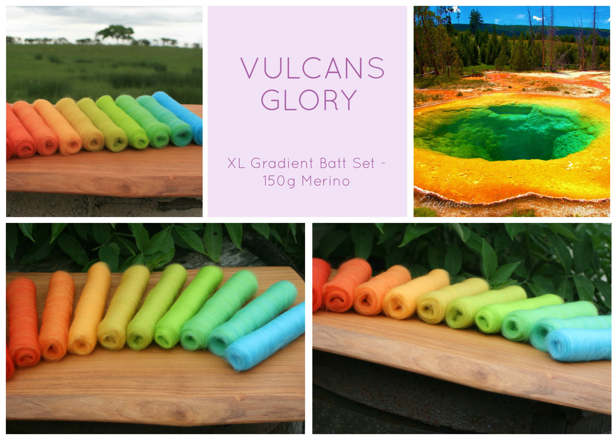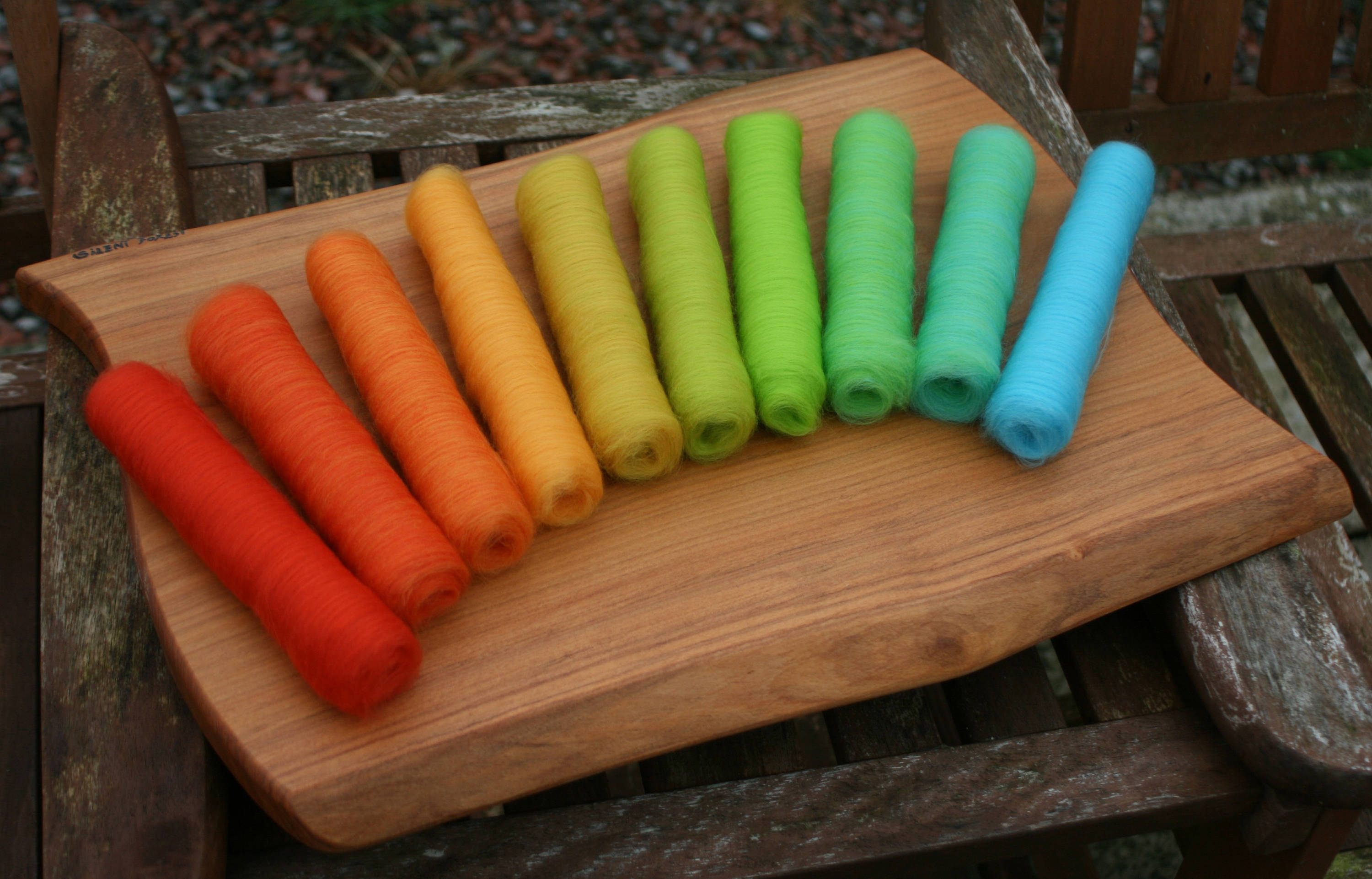 This gradient consists of 10 mini batts, which together add up to 150g of beautifully soft merino fibre. Carefully blended to produce gradations of colour from turquoise to tangerine.