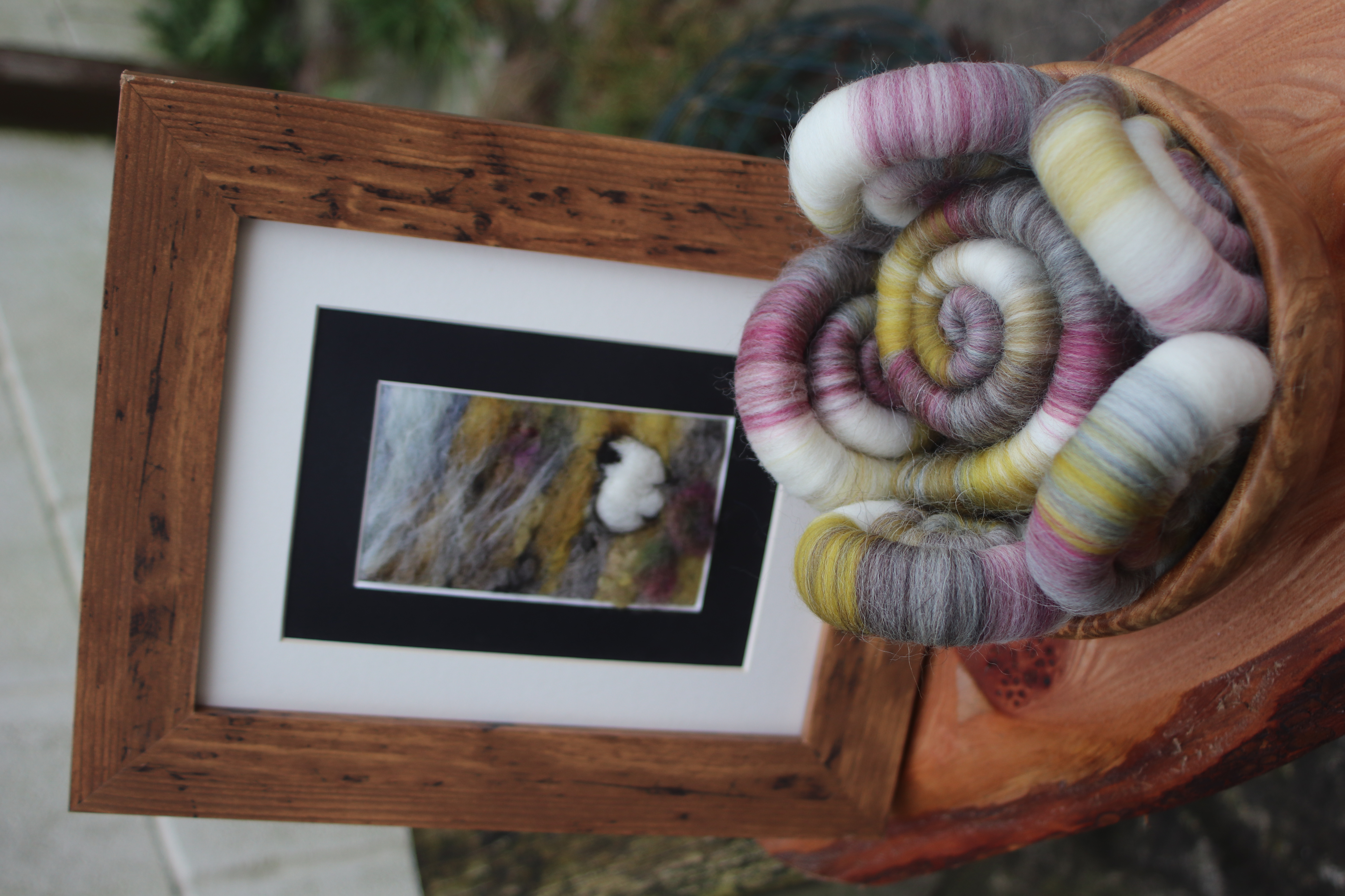 I call this colourway Wild and Woolly, because the day I got this needle felted picture was so wet, wild and woolly! In fact when driving back to Cumbria, at one point I had to pull over because I could not see the road, the rain was so heavy.