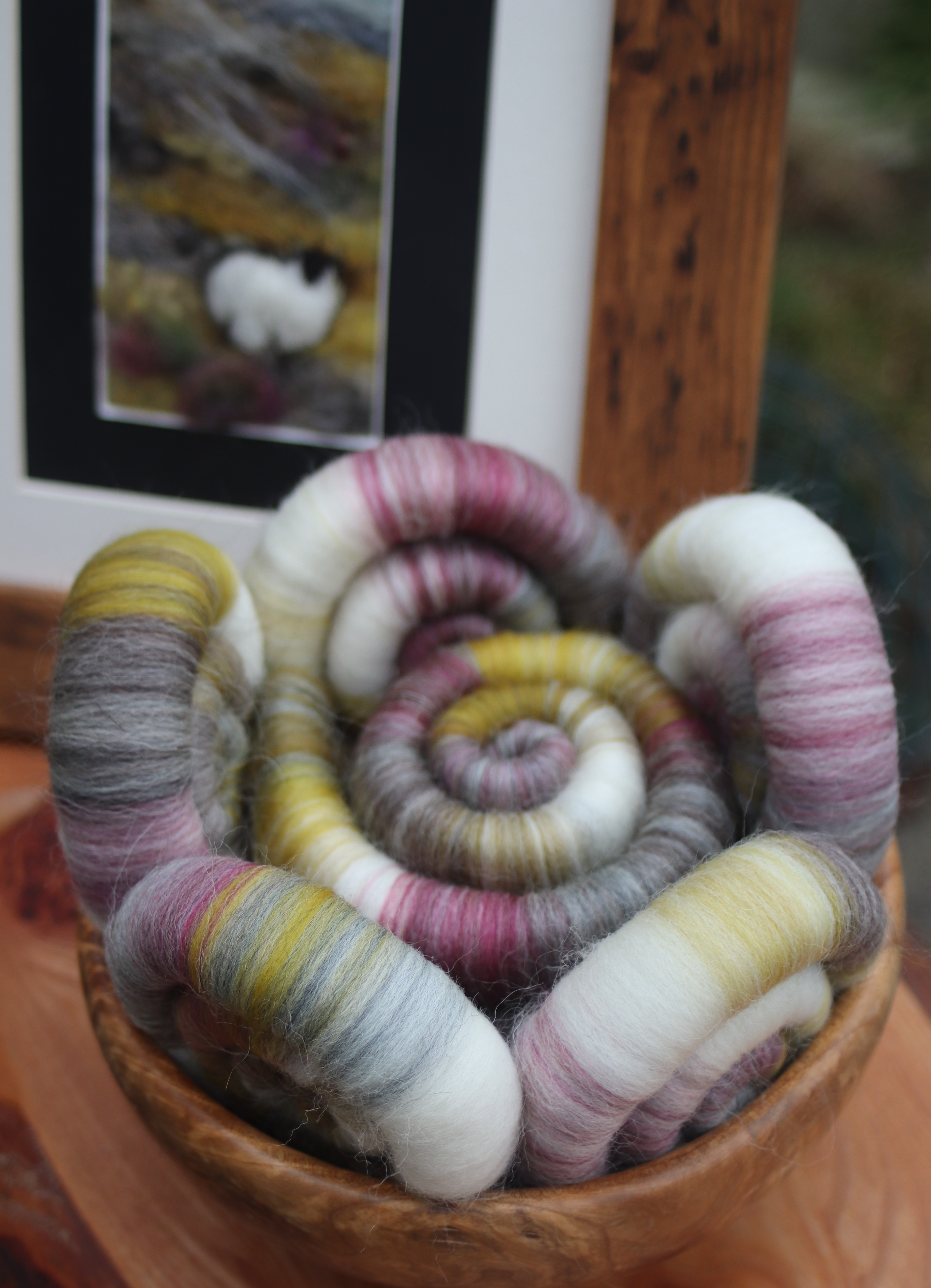 In November last year, I met a lovely lady, Anne Arnold, at the Dumfries and Galloway Spinners, Weavers and Dyers Guild Gathering. I loved this picture and asked Anne if I could use this as an inspiration picture for some rolags. She graciously told me that I could.