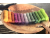 Each batt is 15g moving from gold through golden browns to red/brown, to purple then silver to deep conifer green to bright spring green. In total the colourway adds up to a minimum of 195g of lovely, soft 21 micron merino.