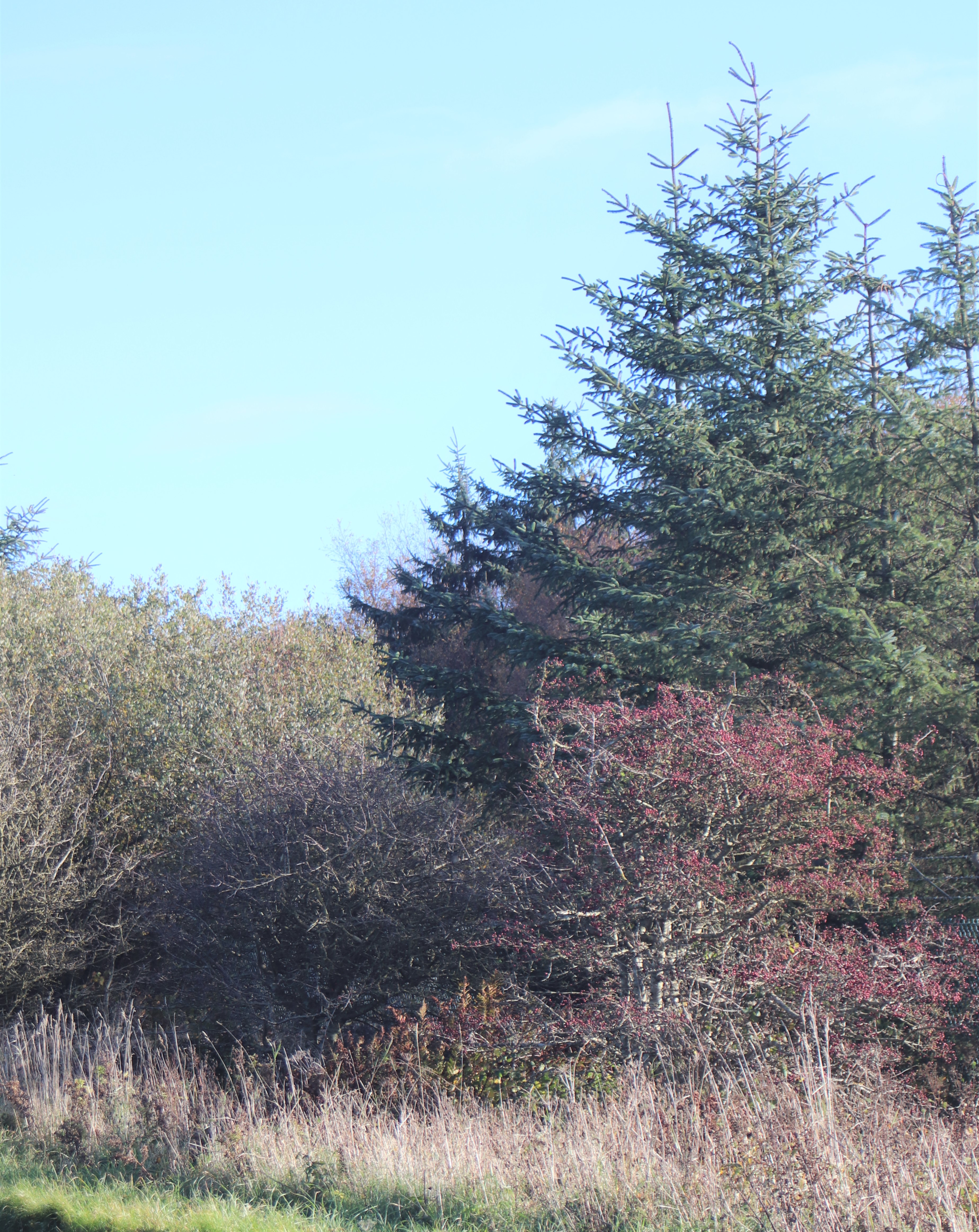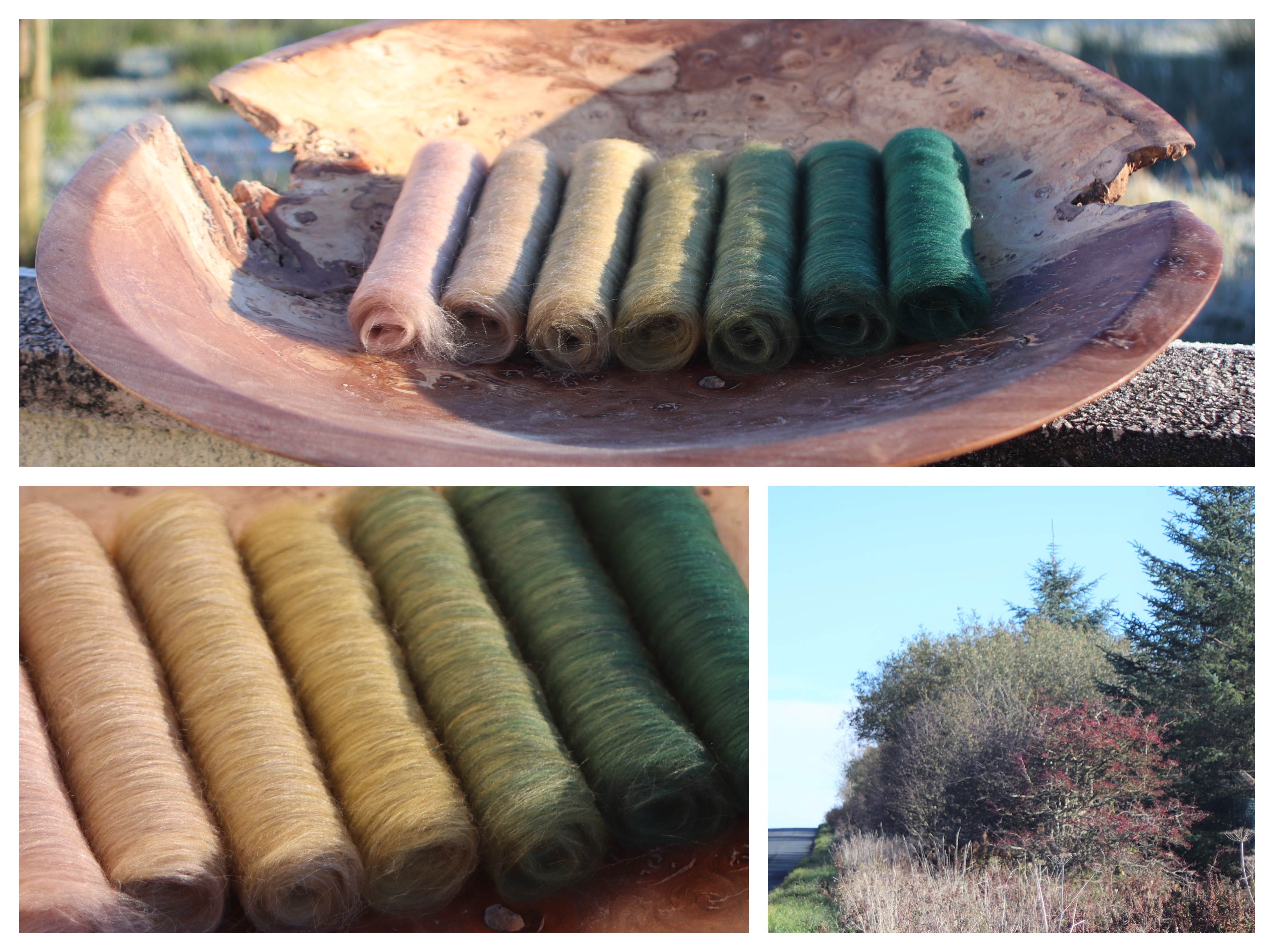 This gradient shows the colours found on the edges of the 'Dump' during a sunny November day. The gradient starts with the light, golden colour of the long grasses, moving into the the khaki shades of the broad leafed tree and moving onto the deep, rich green of the pine.